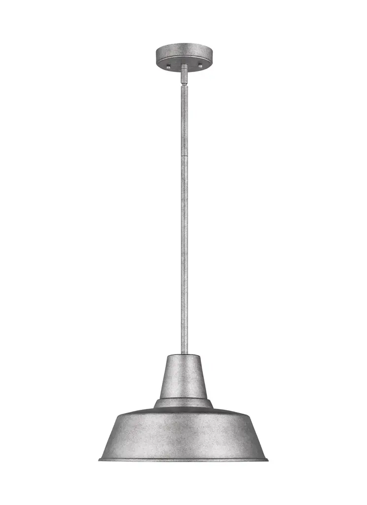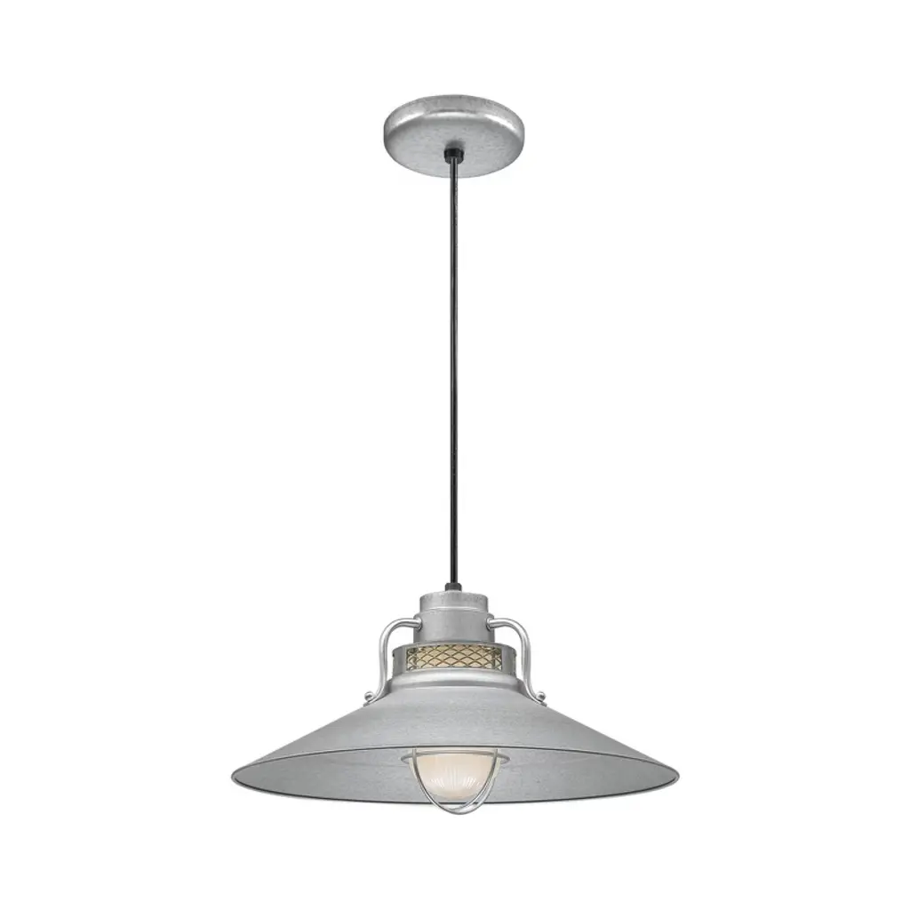 Collection: R Series, Finish Color: Galvanized, Width: 17", Height: 9.25", Number Of Bulbs: 1, Wattage: 200 Watts, Moisture Rating: Damp Rated, Desc: Pendants are the perfect opportunity to blend a utilitarian task light with your own unique design style. Select a pendant light that will reflect not only a beautiful glow, but also your refinement and taste. Light bulbs are not included. Place this fixture over your kitchen island, dining room table or even in your hallway. Compatible with standard wall dimmer 1 year limited manufacture's warranty This item is UL listed This item is cUL listed This item is rated for damp location. Professional installation recommended. 1 Year Limited Shade Dimensions: 17". ,