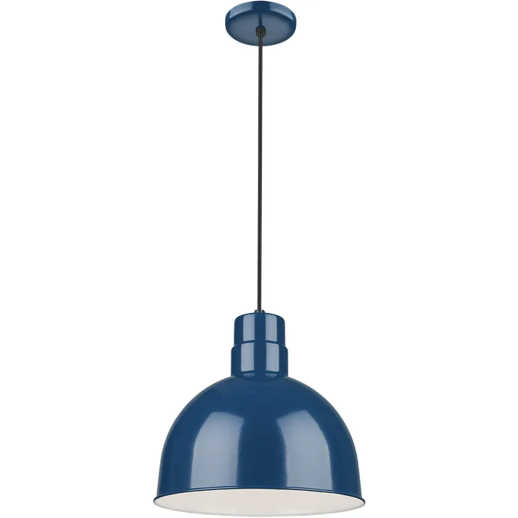 Collection: R Series, Finish Color: Navy Blue, Width: 10", Height: 11", Number Of Bulbs: 1, Wattage: 200 Watts, Moisture Rating: Damp Rated, Desc: Cord Hung Deep Bowl Shade Canopy and 12' Cord included. Shown with optional Wire Guard (RWG10-ABR). Cord Length: 144.00. 1 year limited manufacture's warranty ,