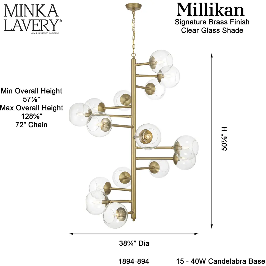 This 15 light Pendant from the Millikan collection by Minka-Lavery will enhance your home with a perfect mix of form and function. The features include a Signature Brass finish applied by experts. This item qualifies for free shipping!