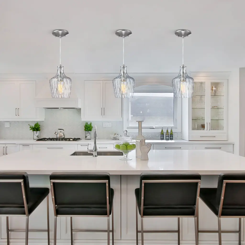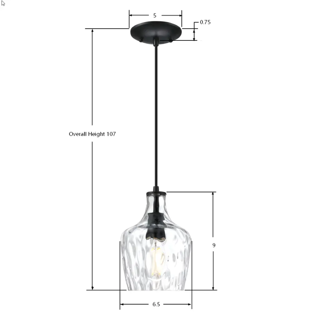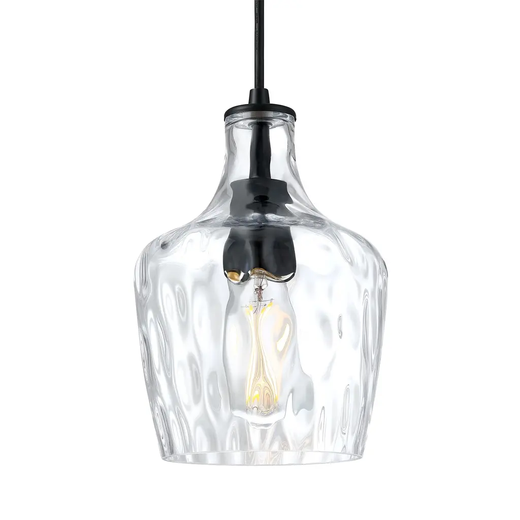 Milo 1-Light Black Pendant with Clear Hammered Glass