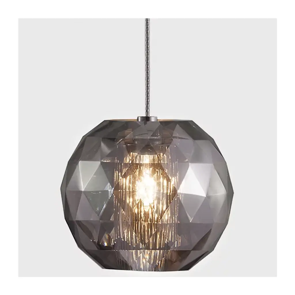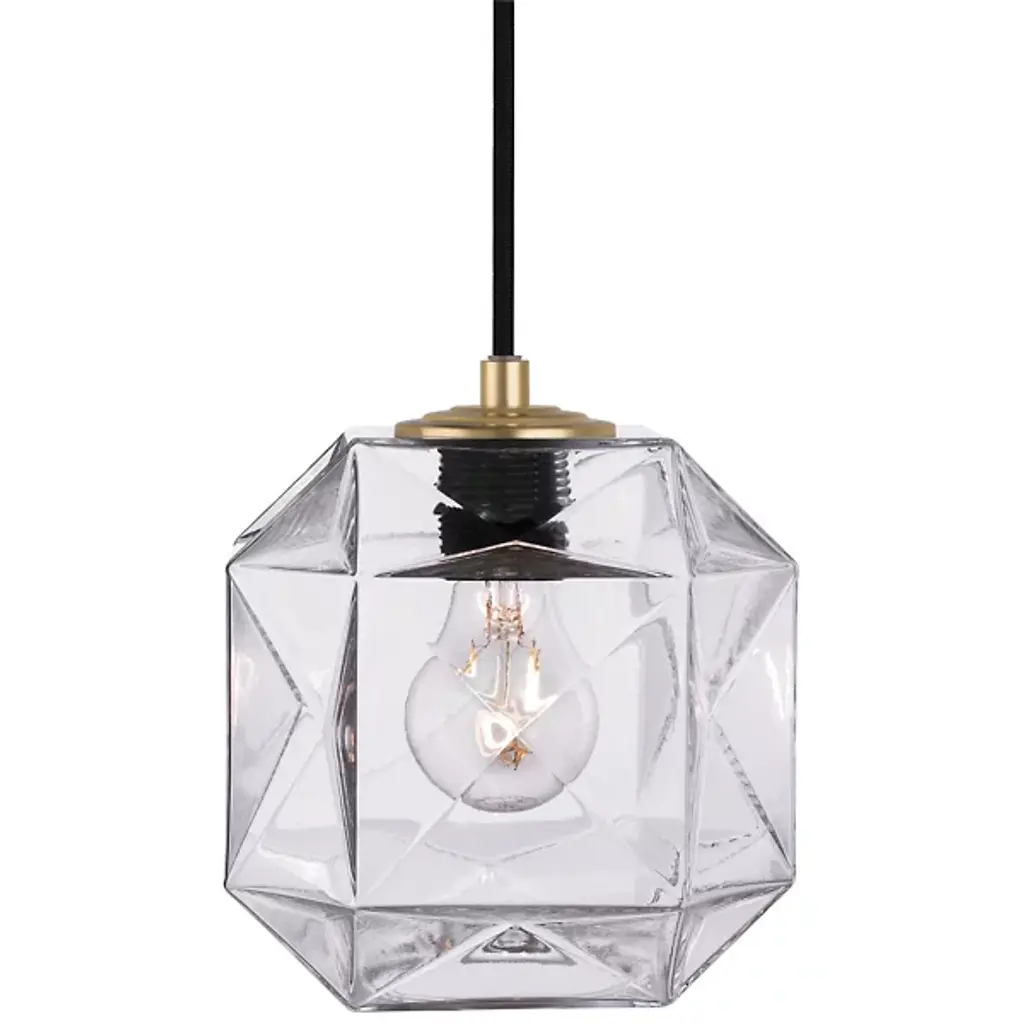 The Oggetti Luce Mimo Cube Pendant combines artisan glass blowing with Mid-Century Modern aesthetics. The glass form is in a cube shape, with many facets on each side to uniquely diffuse the illumination. Petite yet effective, use as a single to illuminate a cozy corner of a room or multiples at different hanging lengths to design your own custom lighting fixture.