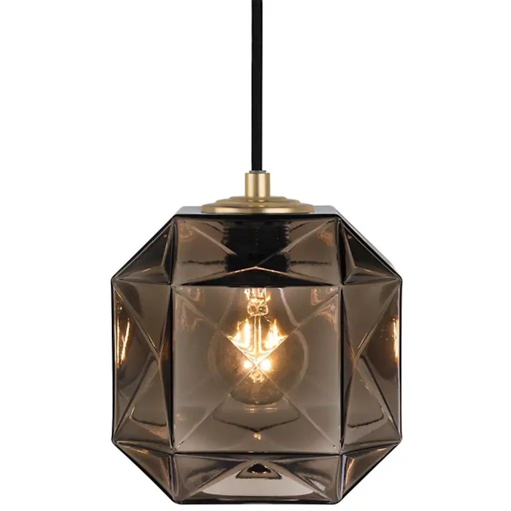 The Oggetti Luce Mimo Cube Pendant combines artisan glass blowing with Mid-Century Modern aesthetics. The glass form is in a cube shape, with many facets on each side to uniquely diffuse the illumination. Petite yet effective, use as a single to illuminate a cozy corner of a room or multiples at different hanging lengths to design your own custom lighting fixture.