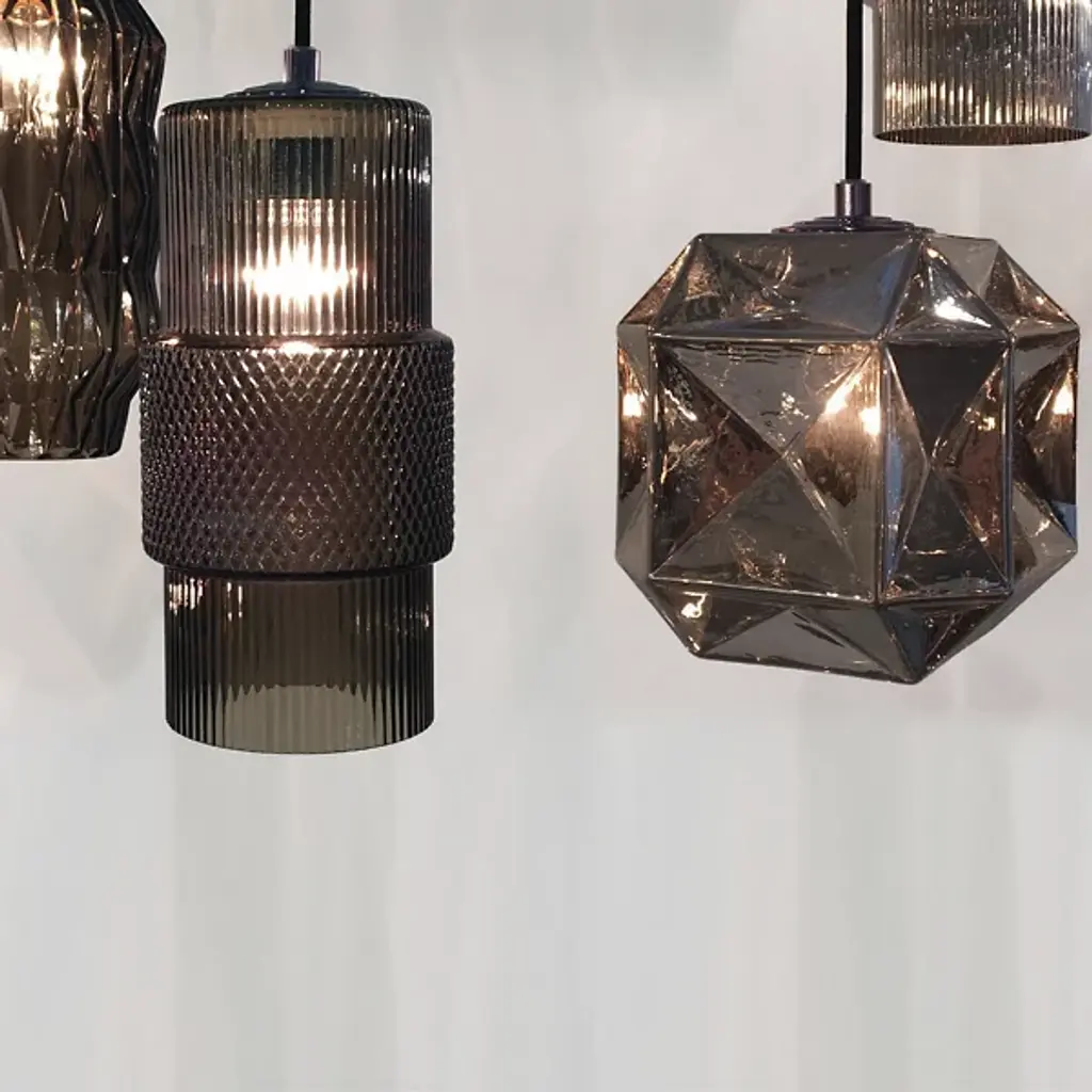 The Oggetti Luce Mimo Cylinder Pendant is an ornate piece full of juxtapositions. The hand blown glass form has hard edges yet comes off as soft and inviting. The layered look of the glass adds depth and texture, as well as diffuses the illumination in a beautiful way. Use as a single to illuminate a cozy corner or a few in a row over a kitchen island.
