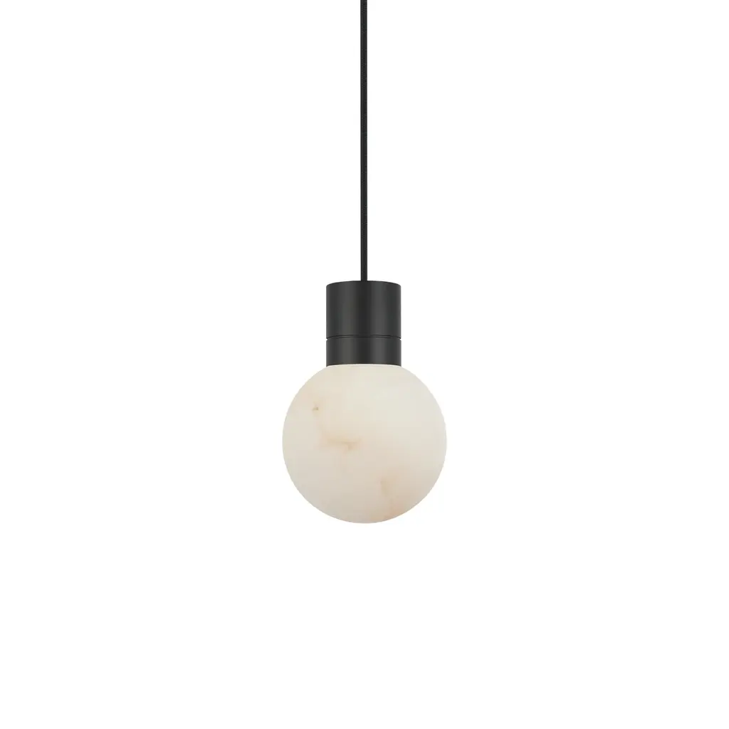 The Mina Alabaster LED Pendant Light from Visual Comfort Modern is a stunning modern interpretation of a vintage bulb. Made with a perfect sphere of natural alabaster stone, it emits a beautiful glow when lit. Perfect for adding a chic and minimalist touch to any space, string multiple across an elegant kitchen countertop or use to highlight a cozy entryway or hallway. Highlights
