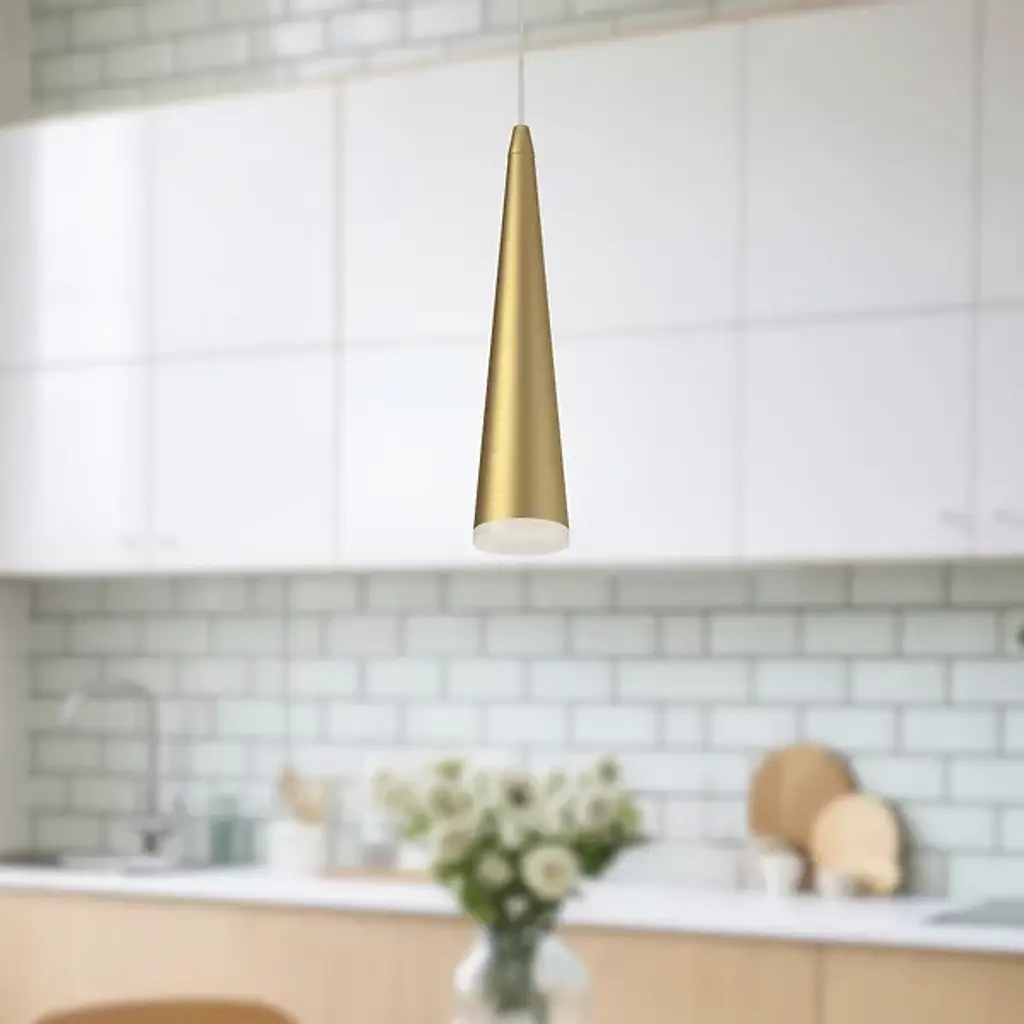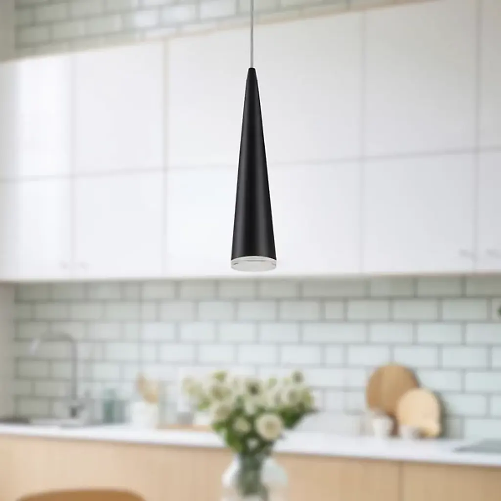 The Kuzco Lighting Mina LED Mini Pendant brings a fresh contemporary style to energy efficient lighting. The sleek conical shape hosts an LED light source, which is diffused through the bottom clear acrylic diffuser. Use one as an accent light or a few at different lengths as an alternative to one large chandelier.