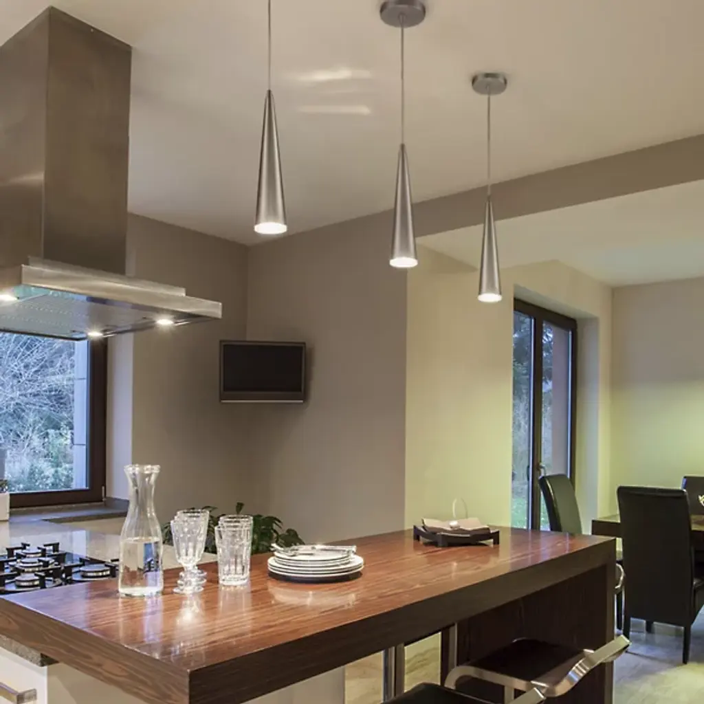 The Kuzco Lighting Mina LED Mini Pendant brings a fresh contemporary style to energy efficient lighting. The sleek conical shape hosts an LED light source, which is diffused through the bottom clear acrylic diffuser. Use one as an accent light or a few at different lengths as an alternative to one large chandelier.