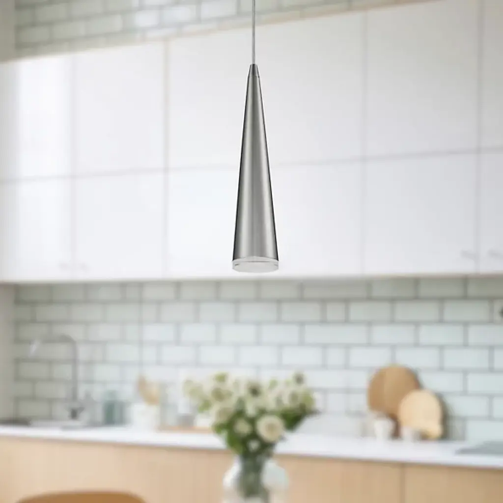 The Kuzco Lighting Mina LED Mini Pendant brings a fresh contemporary style to energy efficient lighting. The sleek conical shape hosts an LED light source, which is diffused through the bottom clear acrylic diffuser. Use one as an accent light or a few at different lengths as an alternative to one large chandelier.