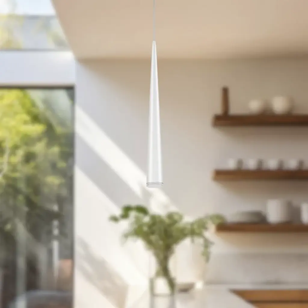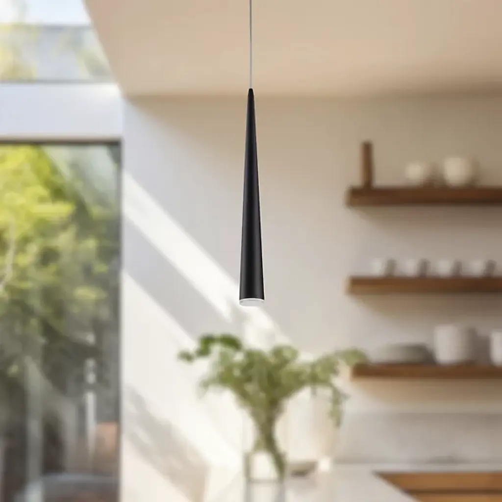 Sleek and modern, the Kuzco Lighting Mina LED Pendant makes a contemporary statement with a long conical shape and energy efficient light source. This minimal piece illuminates the space through the clear acrylic diffuser, providing an even wash of light in your home. Cutting edge and somewhat trendy, this slim light option has a refined quality that remains unmatched.