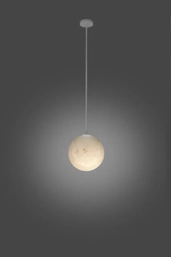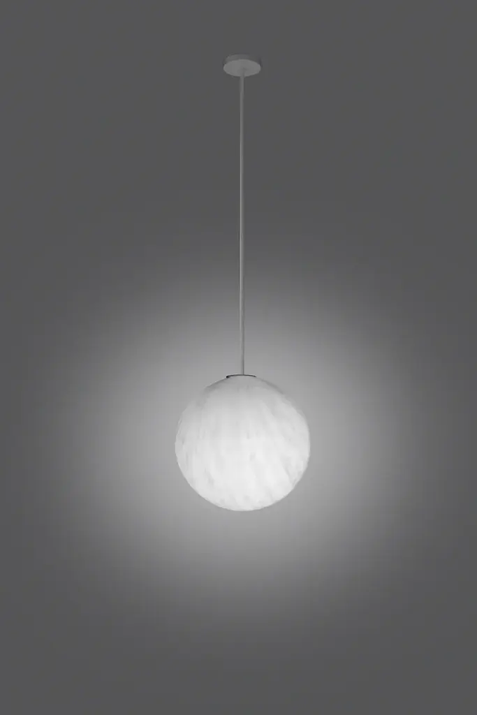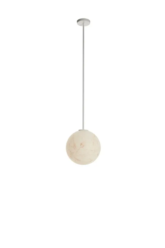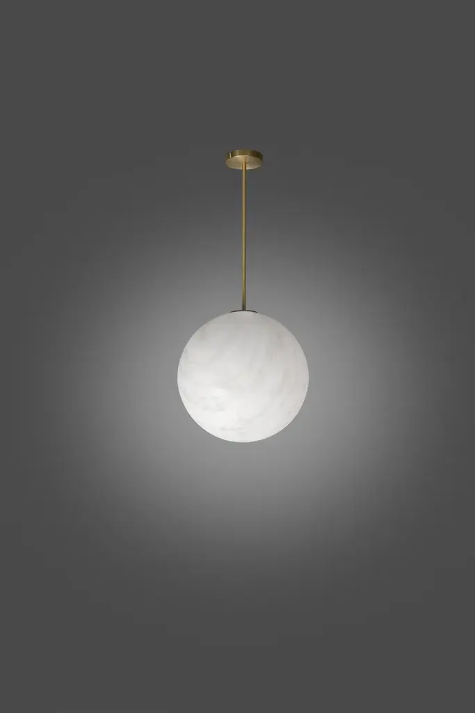 Mineral Tige is a suspension lamp made of polyethylene. Marble elegance combined with brass finishing creates a Mineral version perfect for indoor spaces. The marble-like lampshade, with grey or red veinings, matches with the stem available in two different lenghts and in brass or painted iron. The “Tige” collection is completed by the Murano and Globo collection lampshades. Mineral Tige is perfect to create refined settings, both as single element and infinite compositions.Light source:- 1 x 10 W bulb