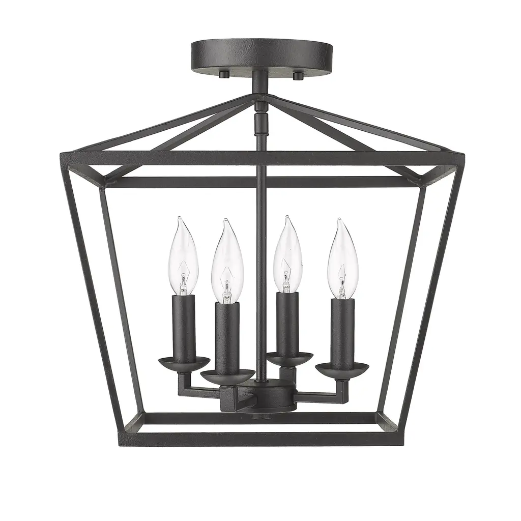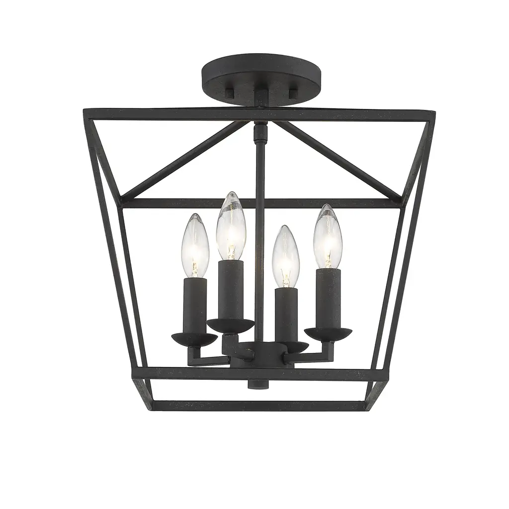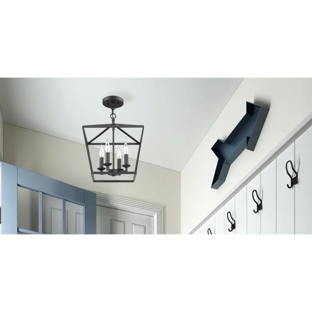 Add a charming touch to your space with the versatile Mini Lantern Ceiling Light and Pendant in Black. This semi flush light showcases a popular lantern-style design with smooth lines and a sleek black finish that complements any decor. Perfect for small spaces, entryways, and hallways, this light fixture features an open-air look with updated square light holders. With an adjustable chain, it can be installed as a semi flush or pendant light at your preferred height. It is a part of our Old World Charm collection and comes with four lights, illuminating your home with a warm glow.Features: