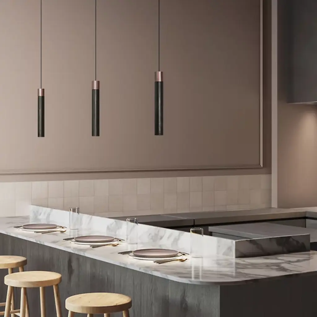 David Pompa celebrates Mexican artisanship and the beauty in imperfect materials with the barro negro-style Minimal LED Mini Pendant from kdln. Translating from Spanish to 'black mud,' barro negro is an age-old style of pottery where clay achieves its rich, dark hue through smoke and heat. Using this technique, a rich, dark cylindrical housing is achieved, one sporting subtle, elegant striations that are distinct. Its metal end cap adds a punch of contrasting shine. It hangs beautifully with a minimal wire suspension. While on, the light funnels through the barro negro cylinder, casting a pool of soft downlight.