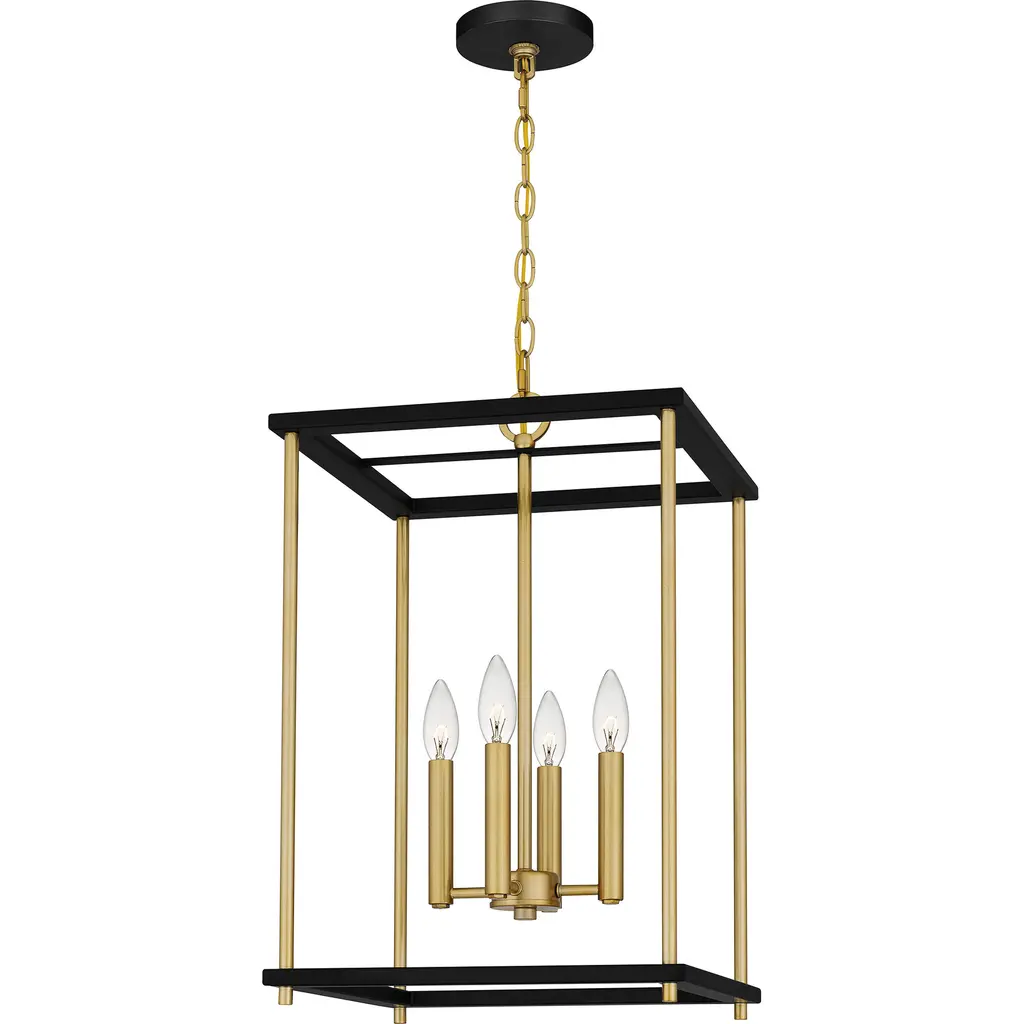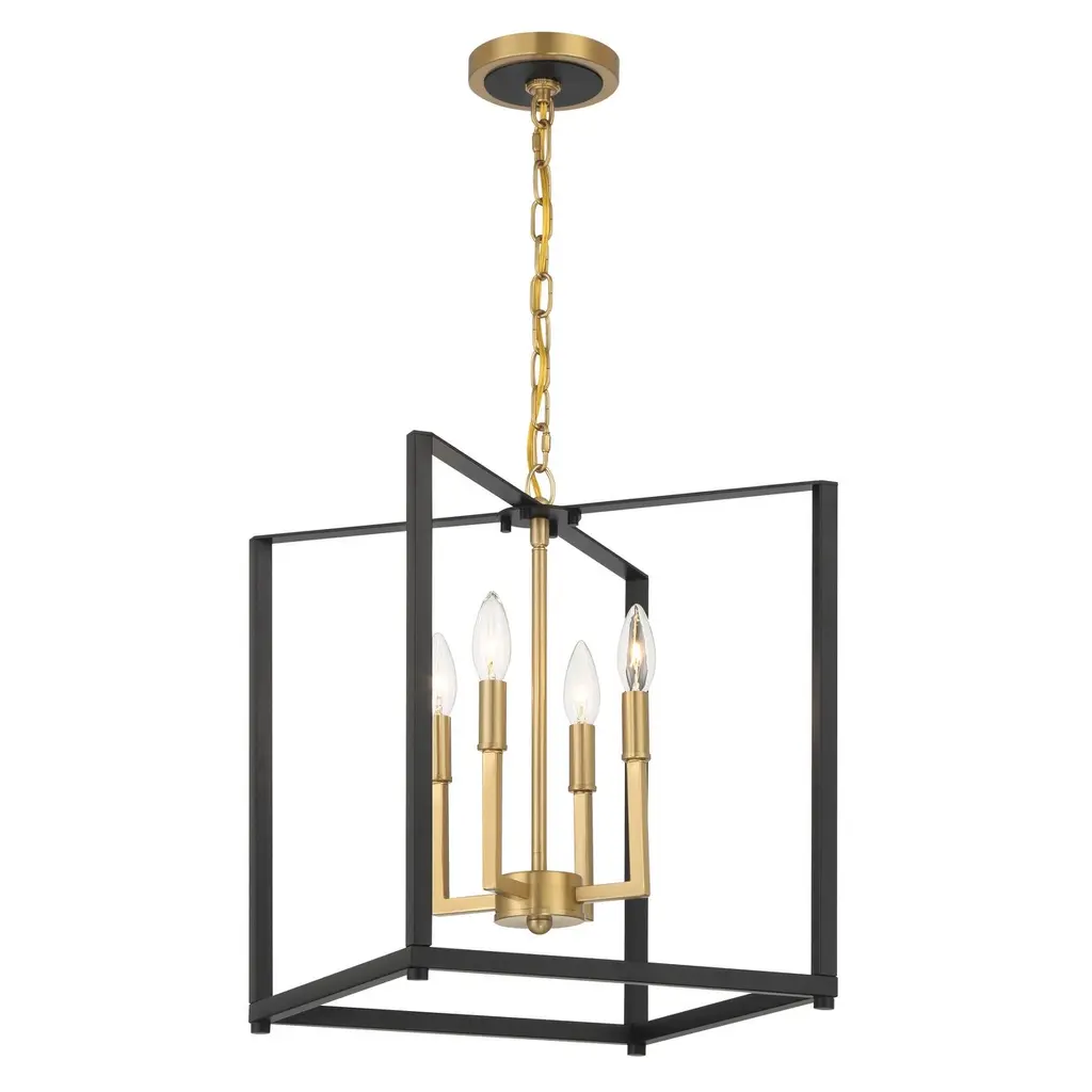 Minka Lavery 1464 Colwick 4 Light 14" Wide Taper Candle Pendant - Coal Black / Signature Brass