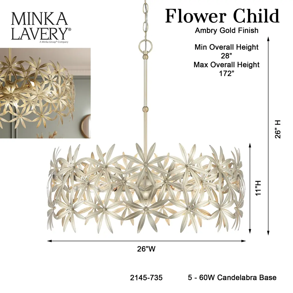 Minka Lavery 2145 Flower Child 5 Light 26" Wide Pendant - Ambry Gold