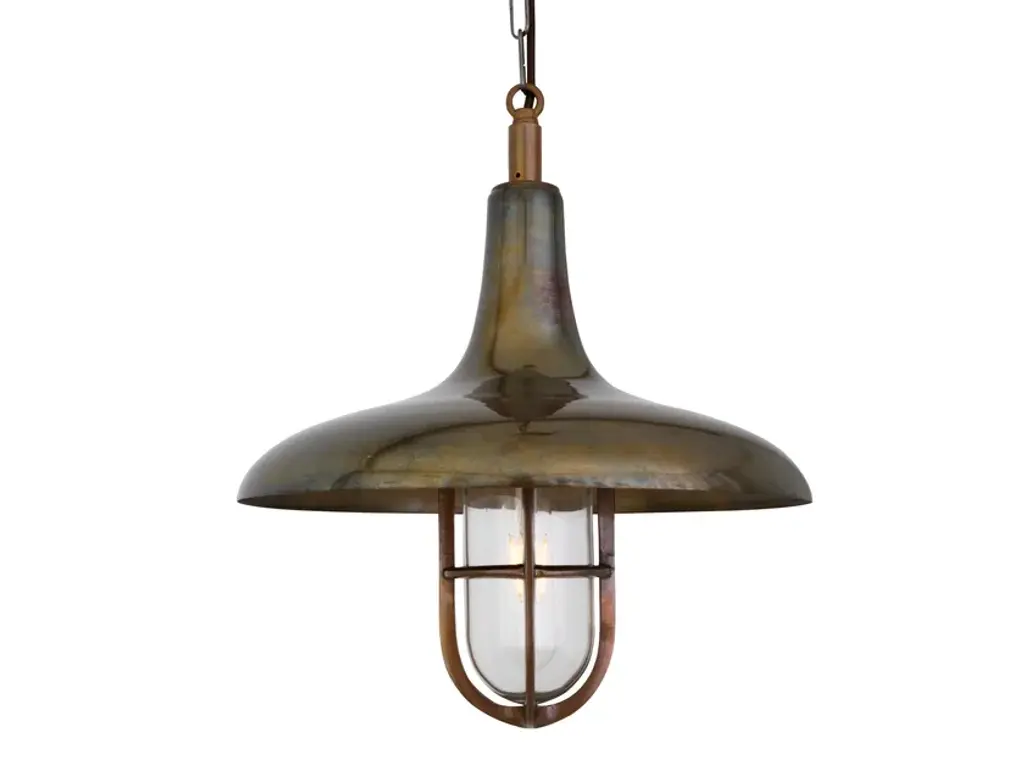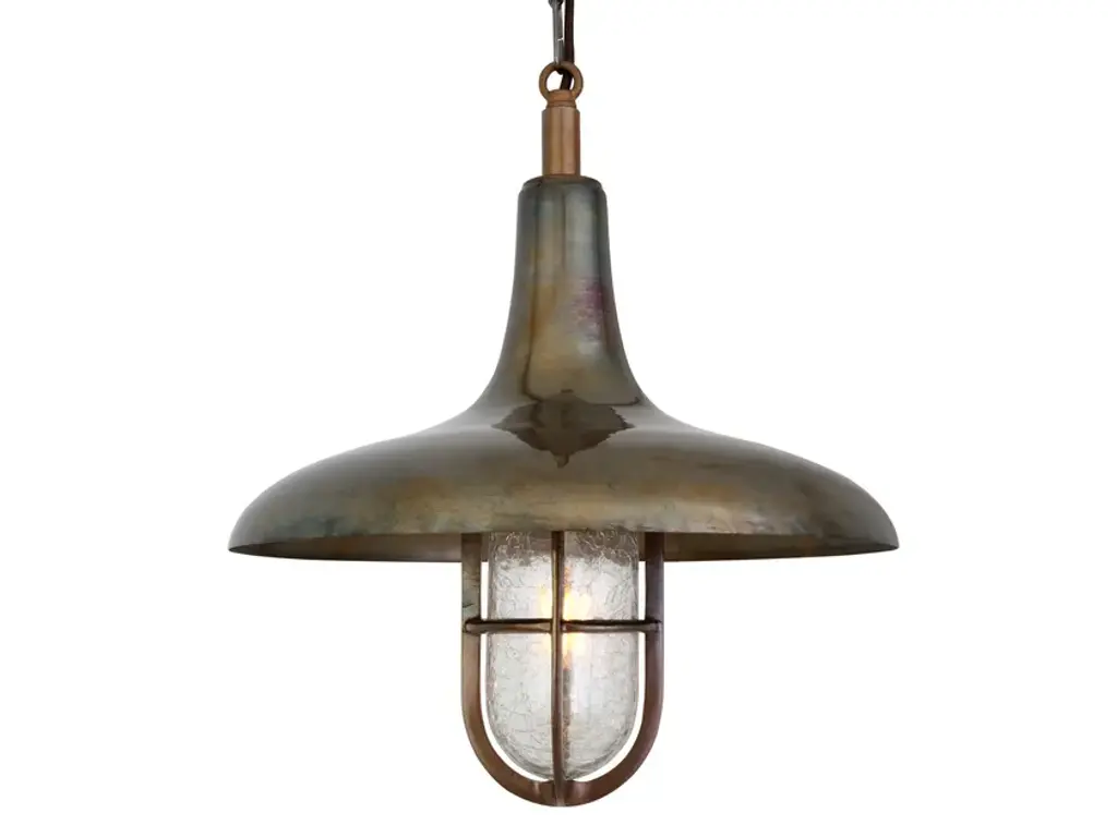 The MIRA is a nautical pendant light that is rated IP65 and can be installed in most bathroom and outdoor locations. It features an industrial-style brass metal shade. Under this metal shade is a well glass lamp shade securely housed in a nautical-style brass enclosure. The MIRA would make an ideal hanging porch light, for example.The MIRA NAUTICAL pendant is available with three different types of glass shade; clear, frosted and crackled. It's also available to order in antique brass, antique silver, polished brass, satin brass and natural brass. It is recommended that only antique brass or natural brass are used outdoors. The industrial-style MIRA pendant comes with one meter of cable and chain as standard, although longer lengths can be ordered if required. A brass ceiling rose is also supplied with this nautical ceiling light. An LED tube light bulb is sold separately.Max Wattage: 40WLampholder: E27 | Plastic | ES | Edison Screw | 2 Core CableVoltage: 220V/240VIP Rating: IP65Protection Class: Class IIGlass Code: GL144 | GL147 | GL148