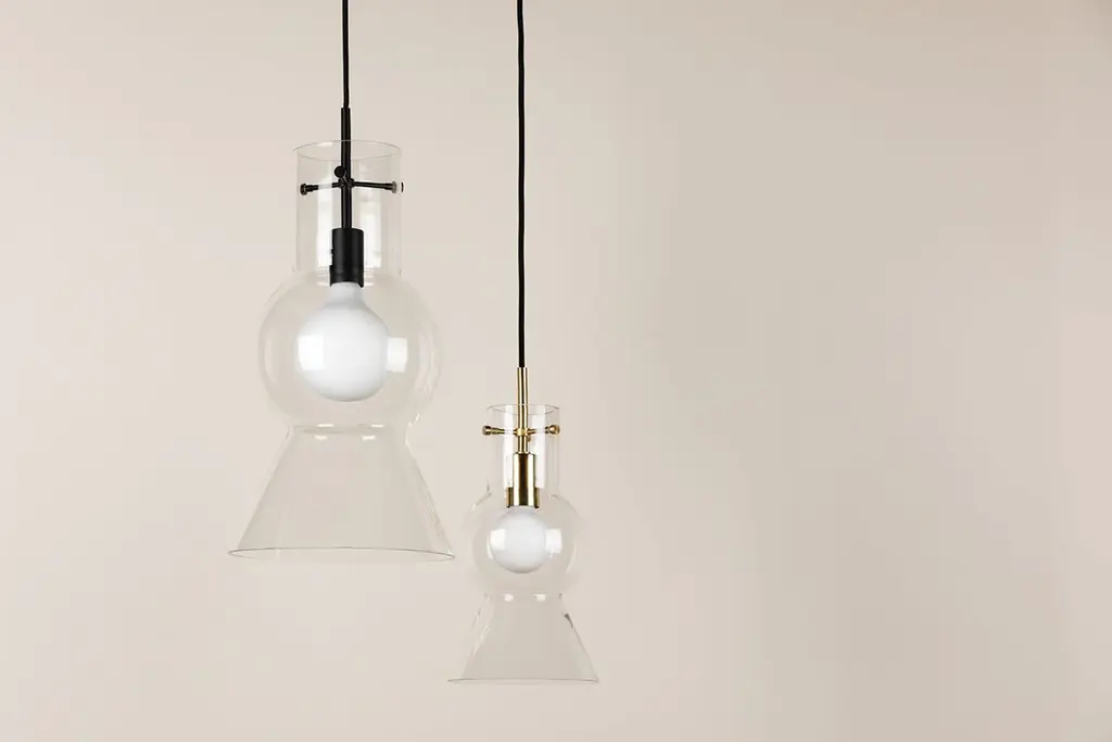 Mirabel is playful in spirit yet endlessly versatile. The totem shape offers more interest than a standard shade, sparking conversation and intrigue. Aged brass, polished nickel, or soft black hardware peeks through the glass shade, adding some flair to its simplistic form. Also available in a smaller size.