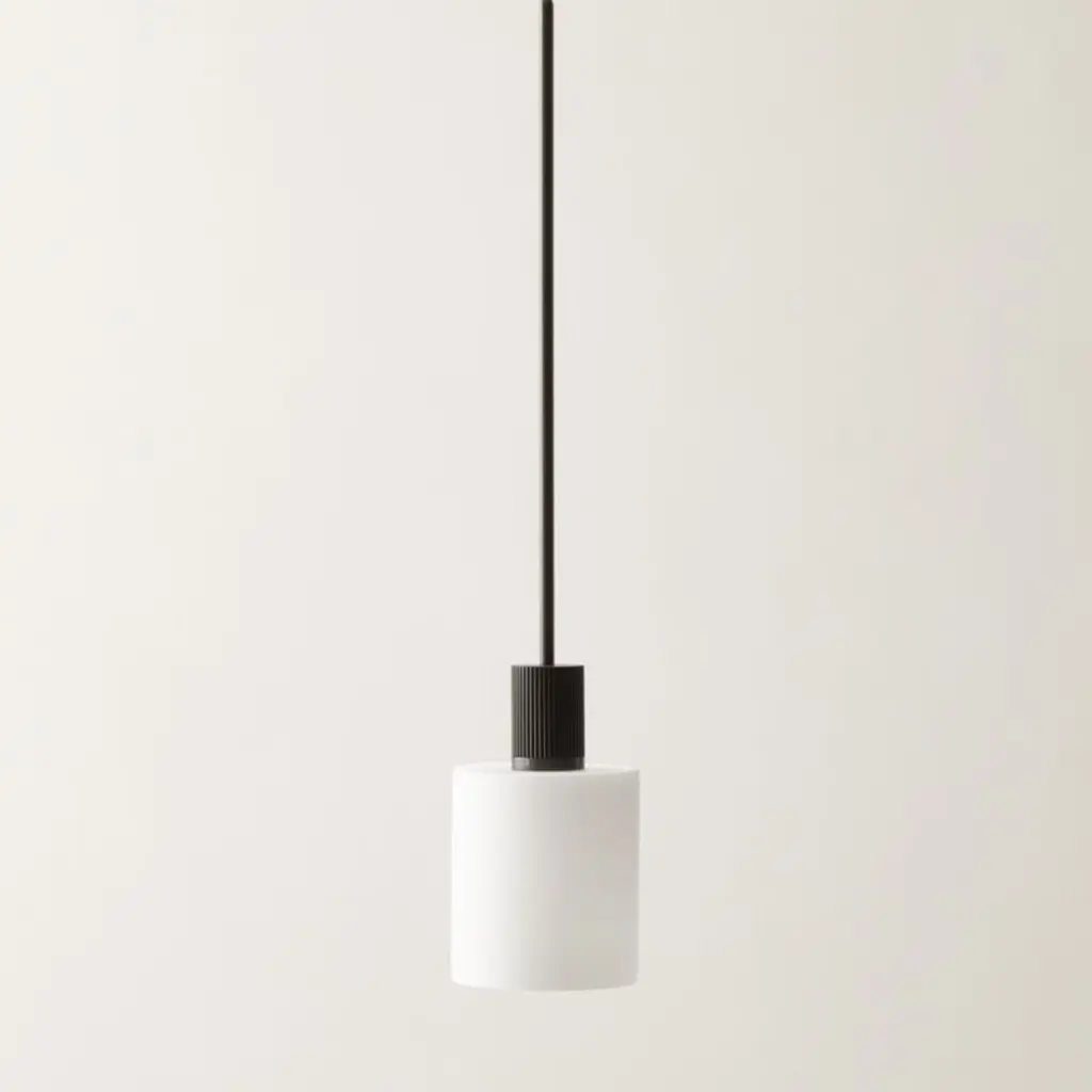 Crisp, tailored fine rib detailing speaks to Brett Beldock's years in fashion design. These blackened brass details sit atop the shade and at the canopy, contrasting with an opaque glass shade for a simple yet considered look. CB2 exclusive.
