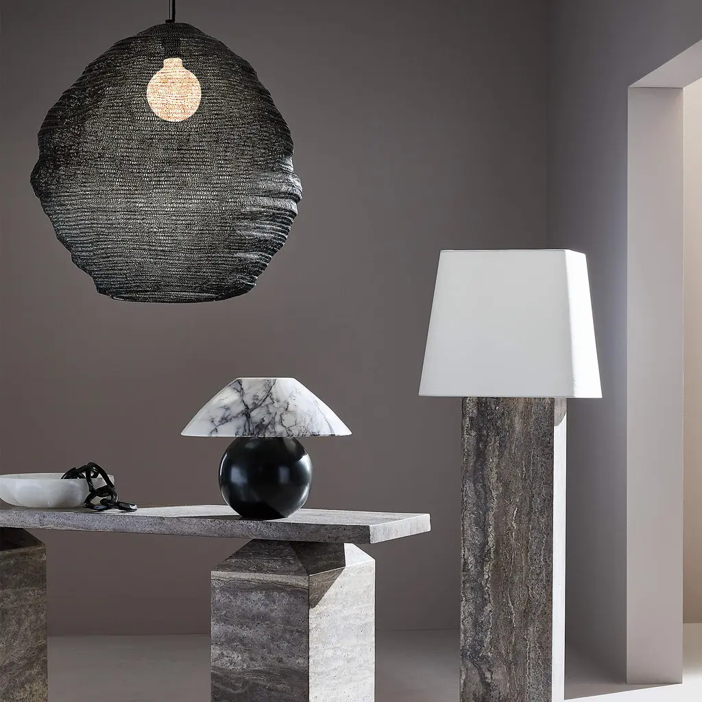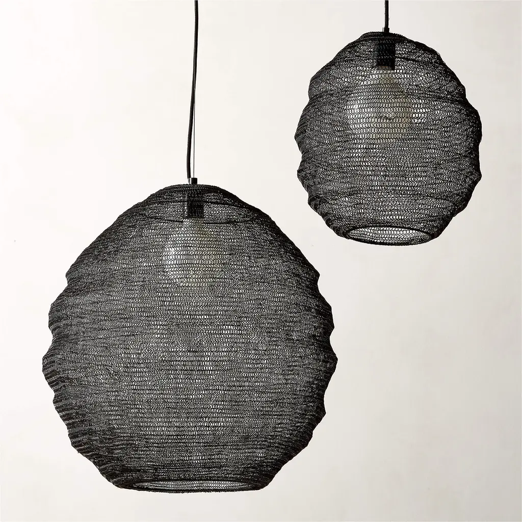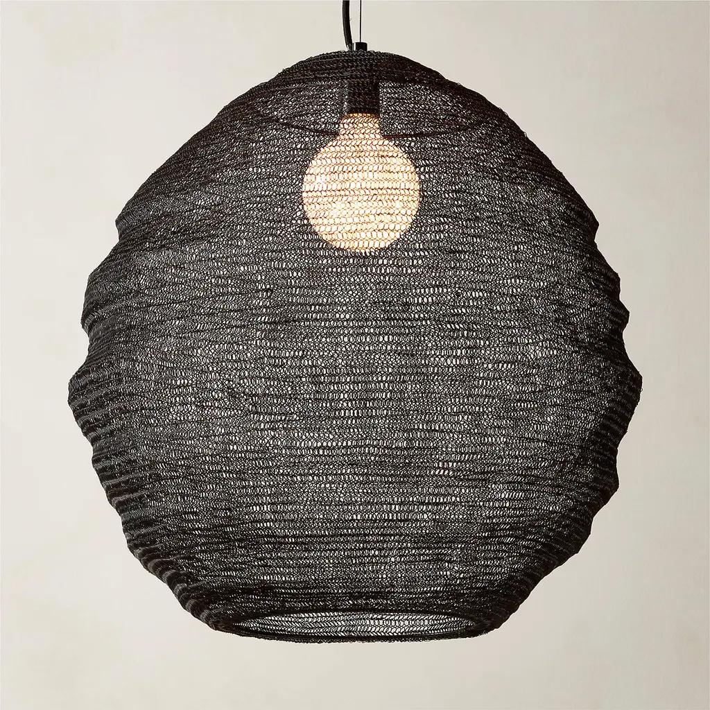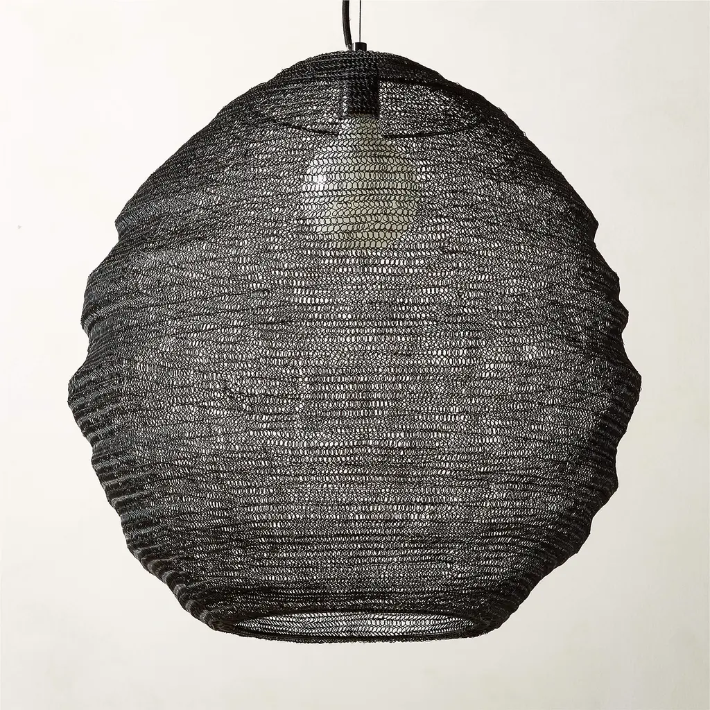 Chainmail-inspired pendant light is handcrafted from iron in a way that makes each silhouette unique. Finished in matte black and sized right for larger spaces—think entryways, lofts or above a dining room table. CB2 exclusive.
