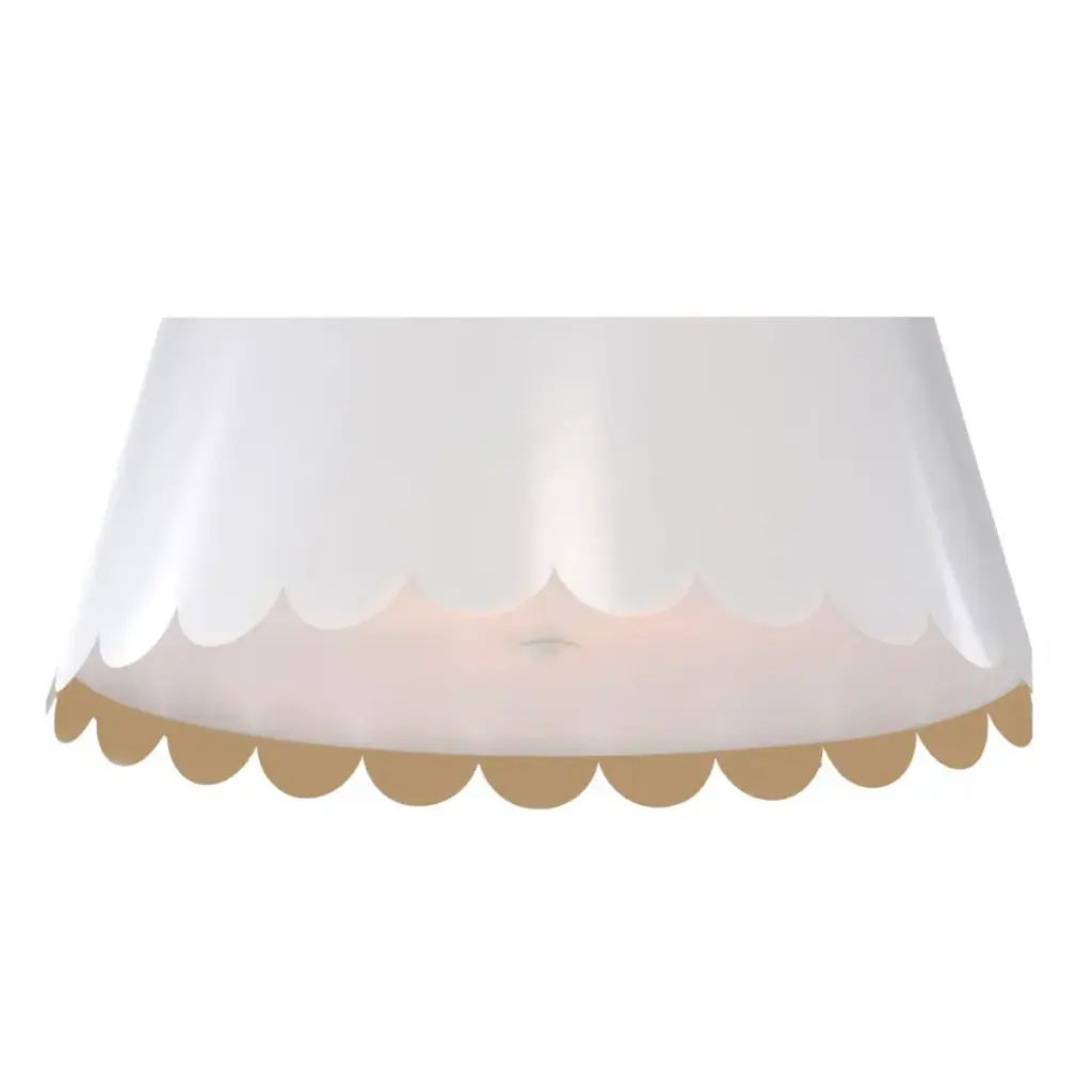 DESIGNED FOR WILDWOOD BY MEG BRAFF DESIGNS, THIS SLEEK PENDANT FEATURES A PLAYFUL SCALLOPED DETAILING SUSPENDED FROM A WHITE CHAIN. MIRASOL PENDANT HAS THREE LIGHTS THAT WILL BRIGHTEN A KITCHEN, SUNROOM OR FOYER. COMES WITH A 5" CANOPY AND 6' OF CHAIN.