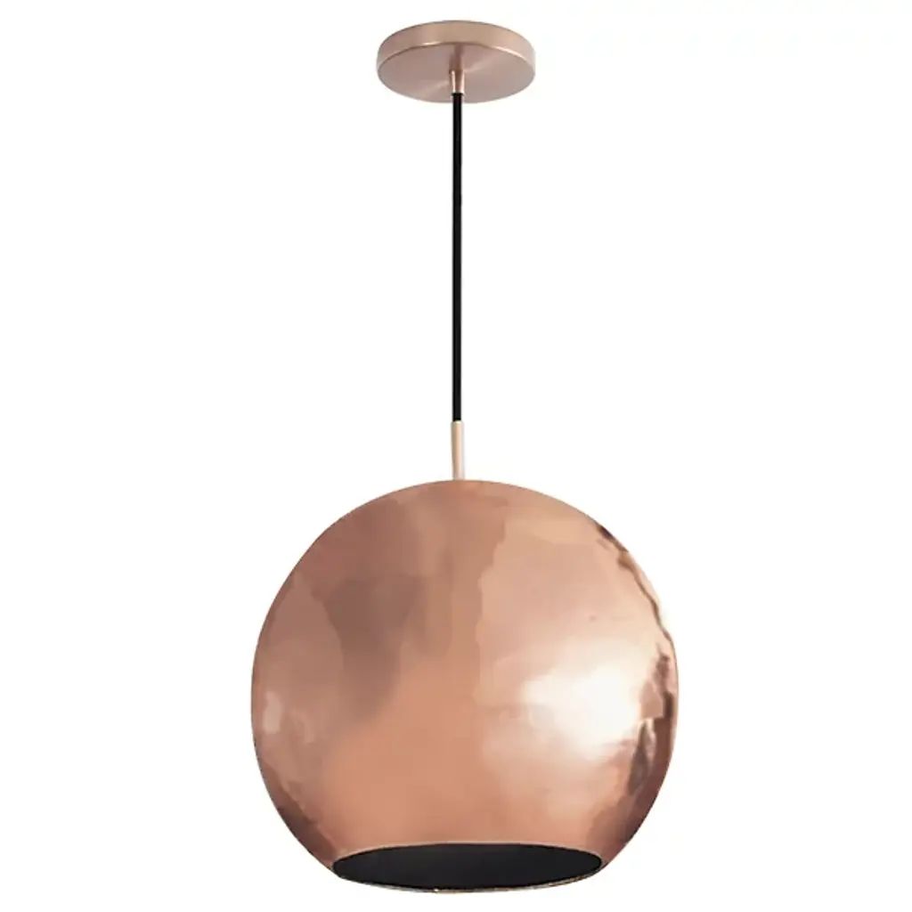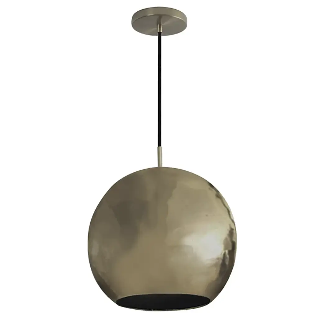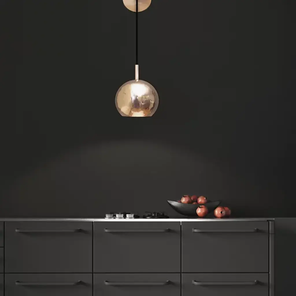 A timeless form designed by Moroccan-based studio Dounia Home and handcrafted by master artisans in Marrakech. Translating to the word lantern, the Mishal Pendant offers versatile lighting in a clean, refined package. Suspended from a circular canopy, the orb-shaped Metal shade elegantly reflects its environment with detailed form and a hued tint that stays protected with a light top coat. A singular circular opening at the bottom focuses its LEDs glow into a glare-free downlight that adds a contemporary touch to the design.