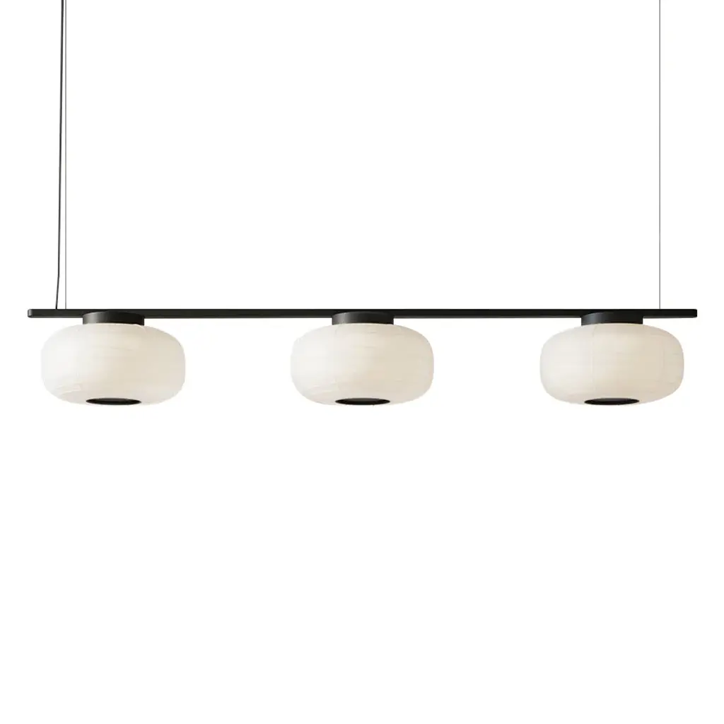 The Misko SH Linear Pendant Light by B.lux offers a refined artistic touch to indoor ceilings. Designed by Stone Designs, it features a low-profile canopy suspending a linear frame that holds two rounded, lantern-style matte opal glass shades. These diffusers soften bright glare into a gentle, elegant glow, blending traditional Japanese inspiration with contemporary sophistication for a timeless lighting statement in dining rooms and kitchens alike. Highlights