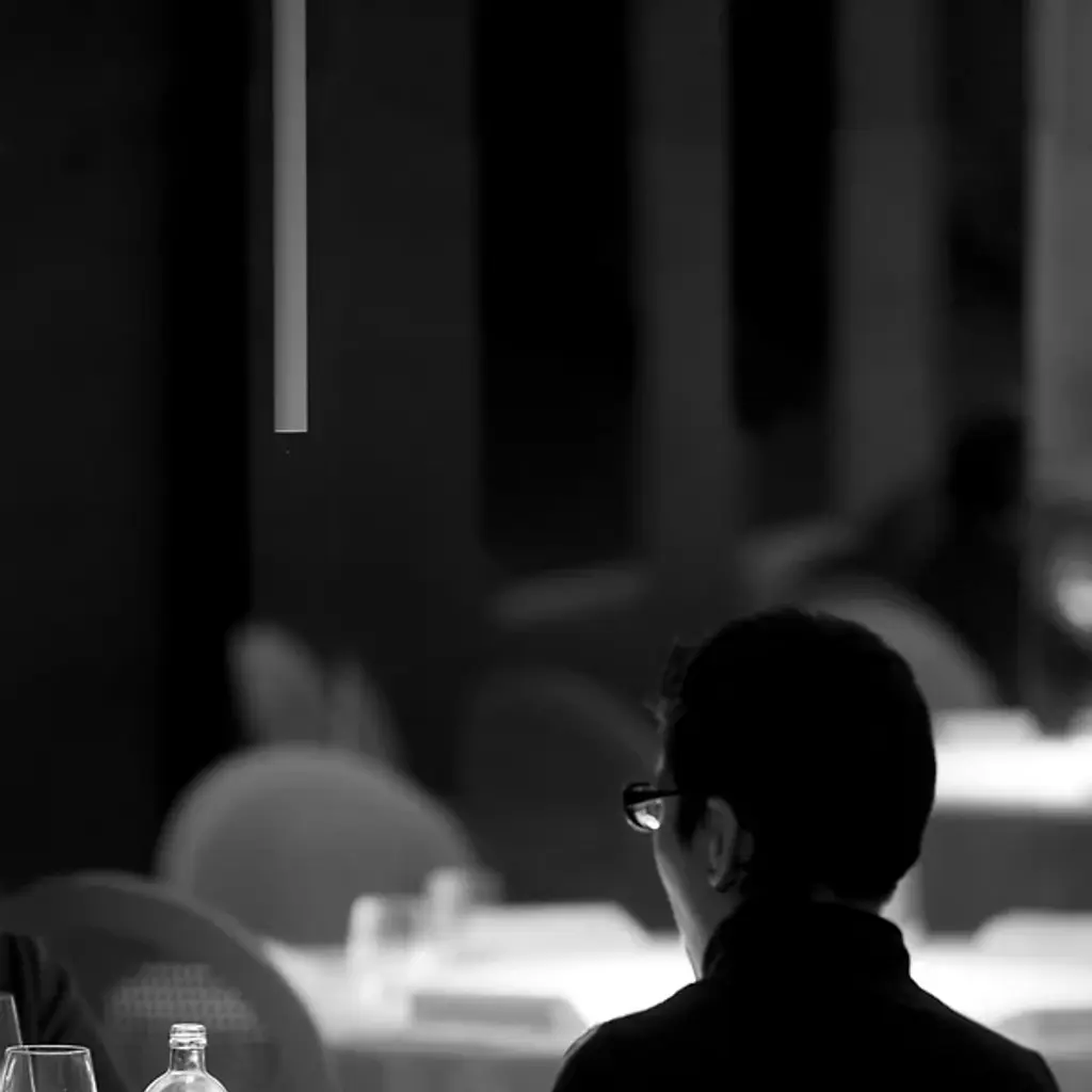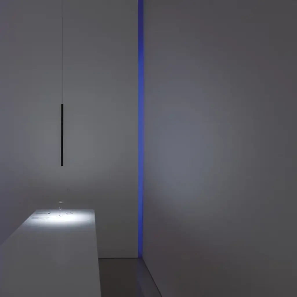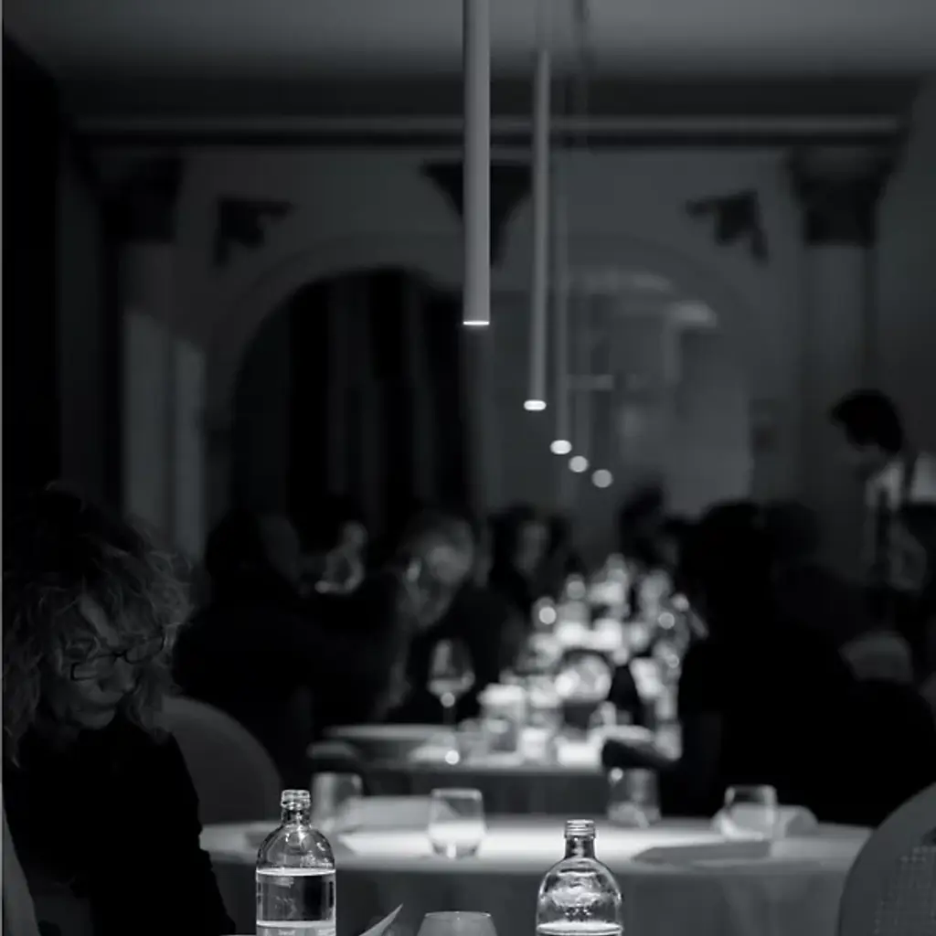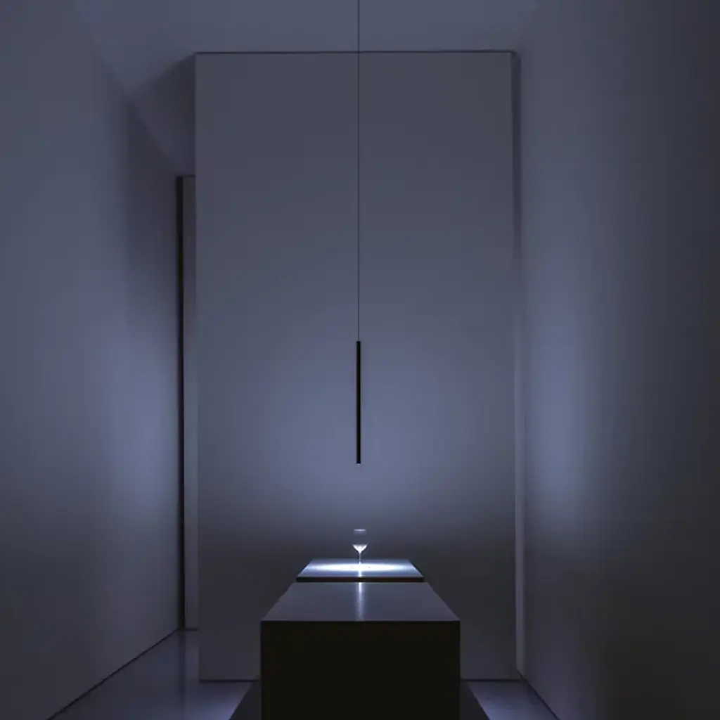 Present a clean contemporary appeal to interiors with the sleek and suspended design of the Miss 1 LED Mini Pendant from Davide Groppi. This expressive and utterly functional design originates from the mind of Omar Carraglia and is made in Italy, descending from a stepped disc canopy to a metal tube housing around strong LED lamping. The open base directs a pool of light below, while the slender body of the fixture creates a welcome, elegant appeal burnished by indirect and reflected glow across its smooth surface.
