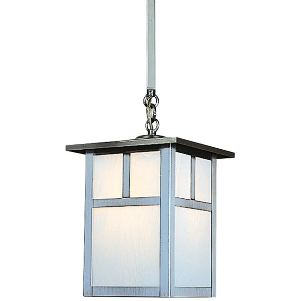 Mission 1 Light 7.25 Inch Pewter Pendant Ceiling Light In White Opalescent, T-Bar Overlay