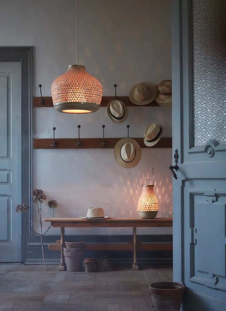 MISTERHULT Pendant lamp - bamboo/handmade 18 ". Gives a soft glowing light, that gives your home a warm and welcoming atmosphere. Each lamp is unique since it is made of bamboo with natural color variations and is hand-woven by skilled craftspeople. To be hung on a ceiling hook.