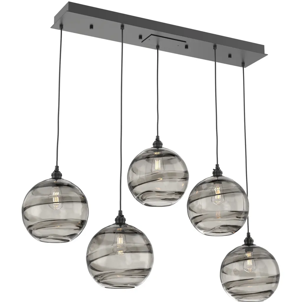 Misto 5 Light Matte Black Linear Pendant Ceiling Light In Misto Smoke, Multi-Port