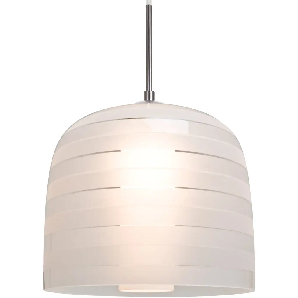 The Mitzi collection combines a stylized multi-striped outer European glass with a matte opal inner diffuser, creating an interesting dimensional depth using layers. Contributing to the effect is the manner of applying the multi-stripes, where they alternate between inside and outside the glass and thus alternate between glossy and matte in finish. And our inner Opal glass is a soft white cased style, produced with a smooth satin finish, created as a result of an extensive etching process. The cord pendant fixture is equipped with a 10' SVT cordset and an low profile flat monopoint canopy. These stylish and functional luminaries are offered in a beautiful Satin Nickel finish.