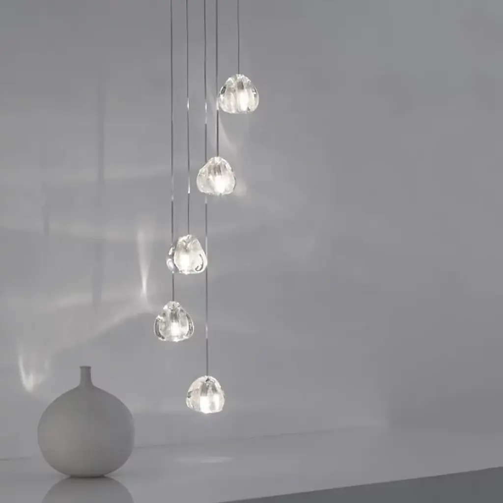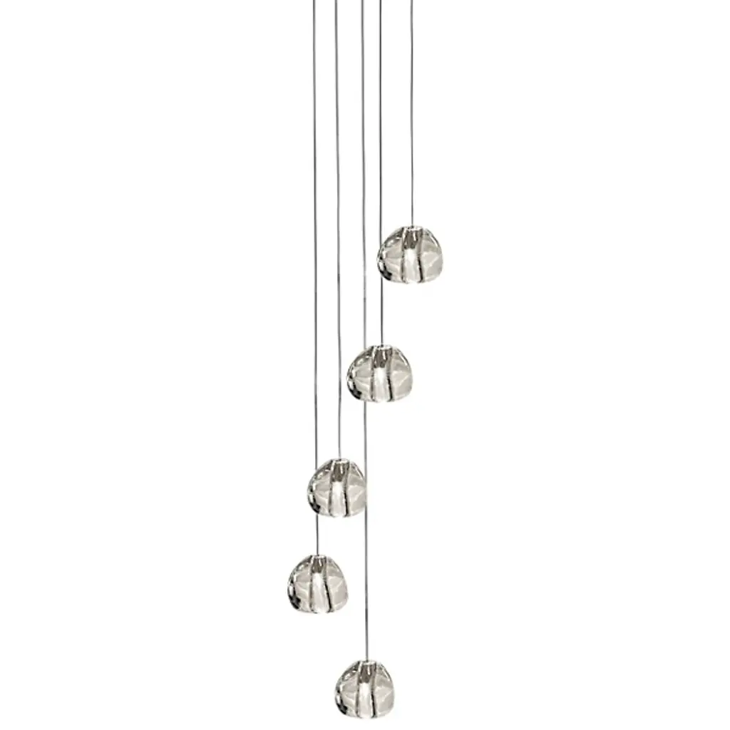 Delicate shades create a stunning light display. The Mizu 5-Light Pendant by Tech Lighting is reminiscent of water droplets dancing. The suspension cord gives the effect of floating on air, while 5 hand-blown crystals create a dazzling appearance any time the lights are on. Each shade made by hand with precision and attention to each detail, and no two are the same, ensuring each pendant is a true original.