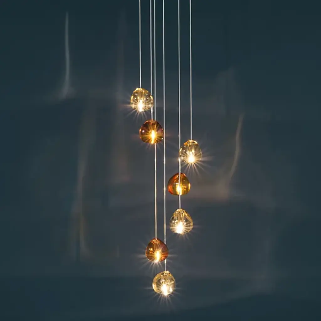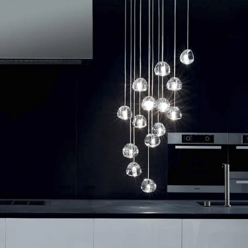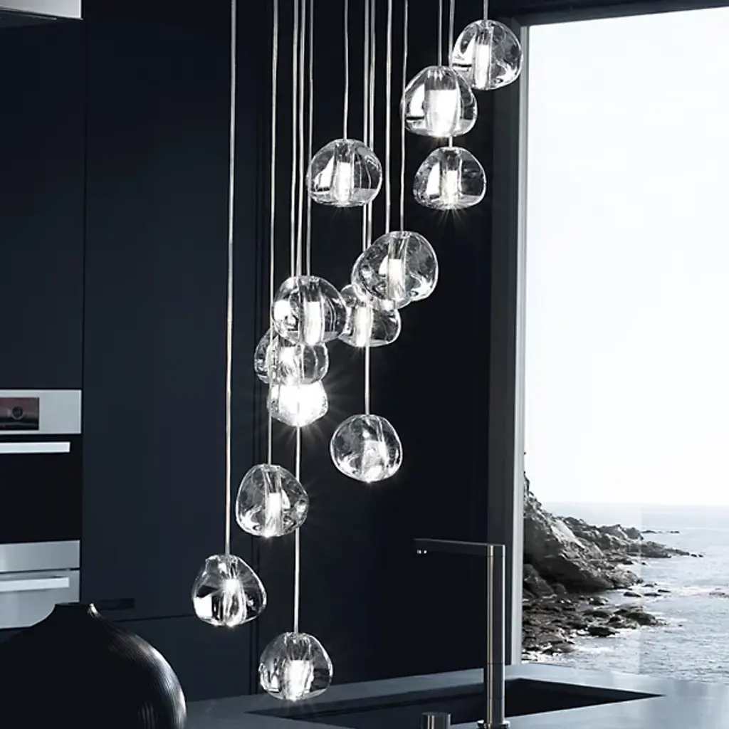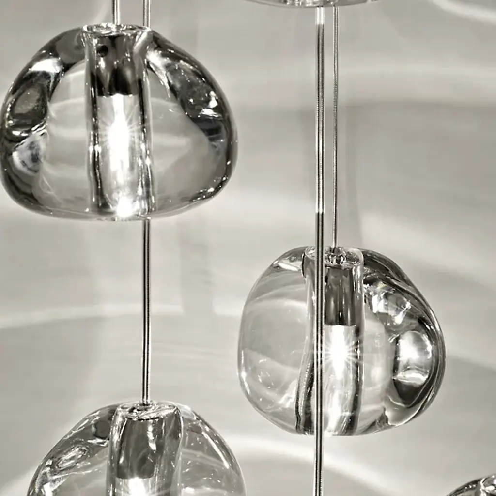 Inspired by the refraction of light created by water, the Terzani Mizu 7-Light Pendant resembles nothing so much as seven falling drops of that pure, clear liquid. Each of the glossy, soft-looking orbs is unique, handmade out of 24% lead crystal to surround and gleam with the light within. The resulting lighting effect is at once tranquil and mesmerizing.