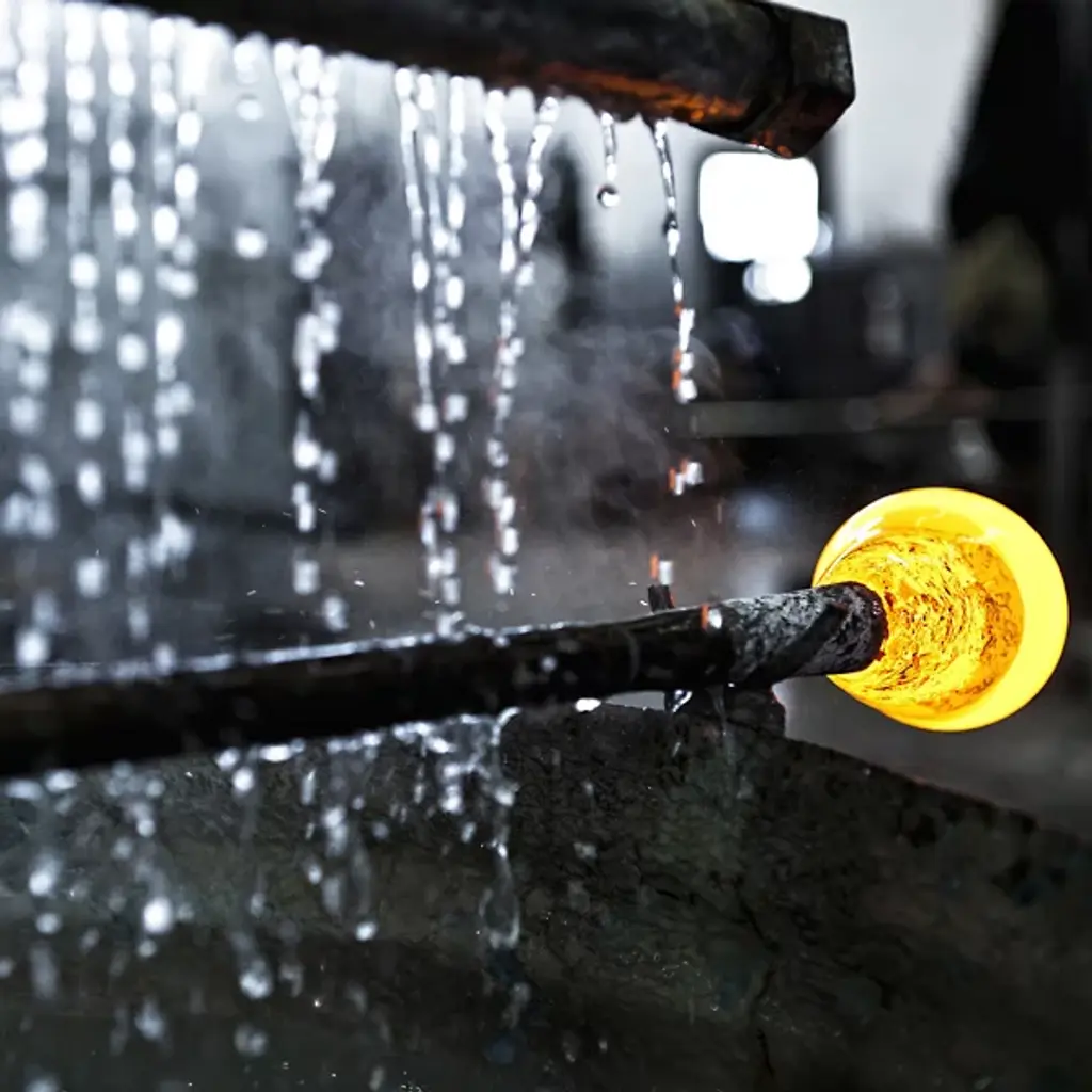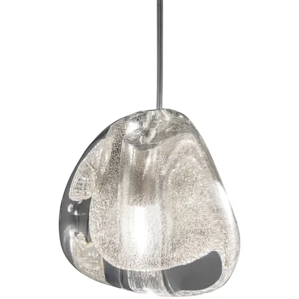 Meticulously formed by hand, the Terzani Mizu Pendant takes its inspiration from how sunlight glints off water and perfectly captures the sense of movement and elegance that is unique to that relationship. No two pieces are the same. Use over a counter to create pools of rippling light on nearby surfaces.
