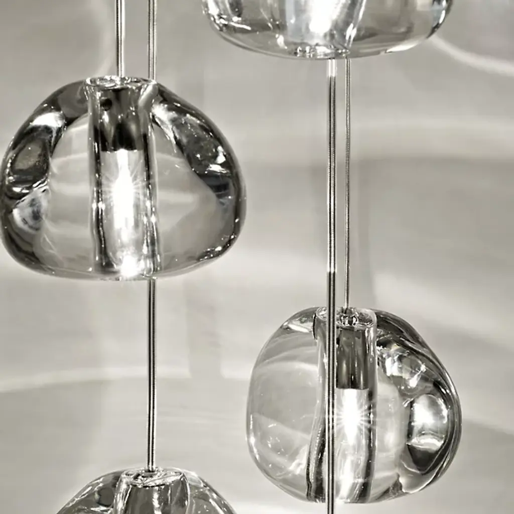 Meticulously formed by hand, the Terzani Mizu Pendant takes its inspiration from how sunlight glints off water and perfectly captures the sense of movement and elegance that is unique to that relationship. No two pieces are the same. Use over a counter to create pools of rippling light on nearby surfaces.