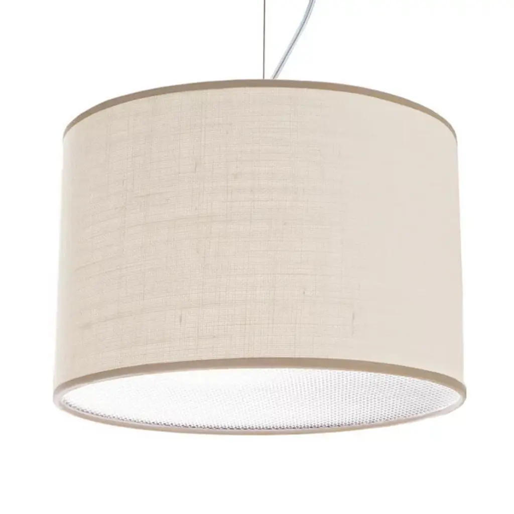 The circular foundation of the Mlampshades CY SO Pendant Light by ITAMA creates a timeless, effortless look for any dining room or living room. Each pendant comes in a variety of sizes and textured fabric shades, which work well with the Prismatic Methacrylate diffuser. With the option between an LED or incandescent bulb (not included), the drum-shaped shade creates a soft, downwards directed beam.