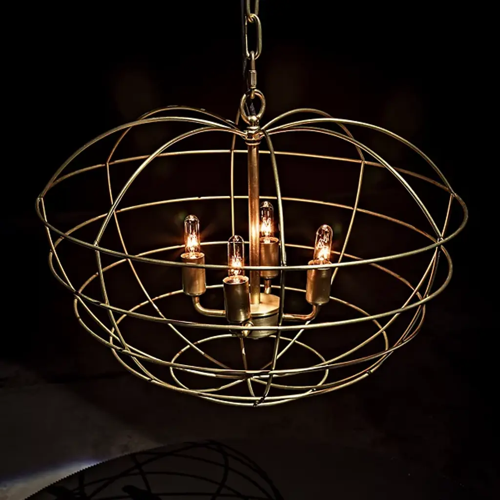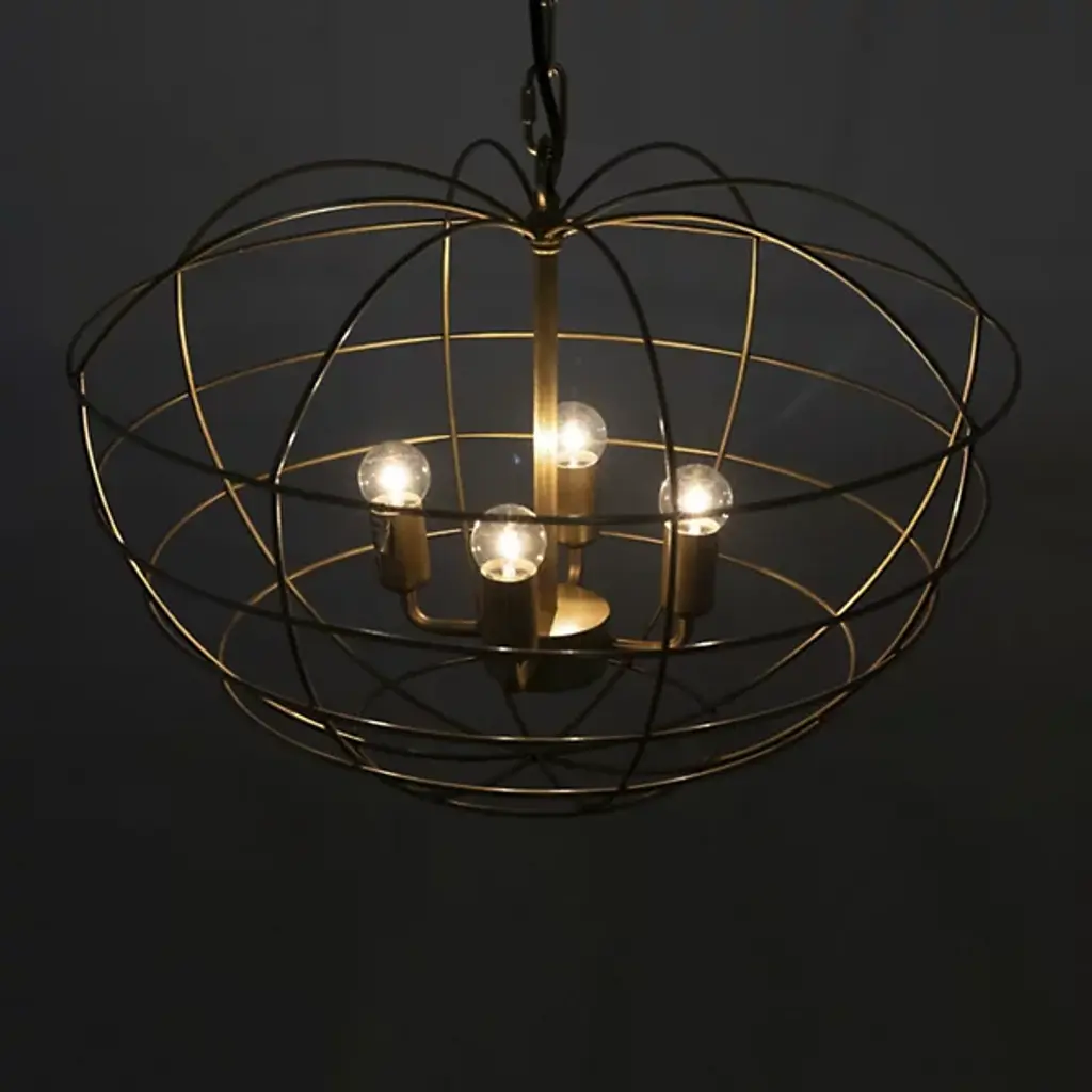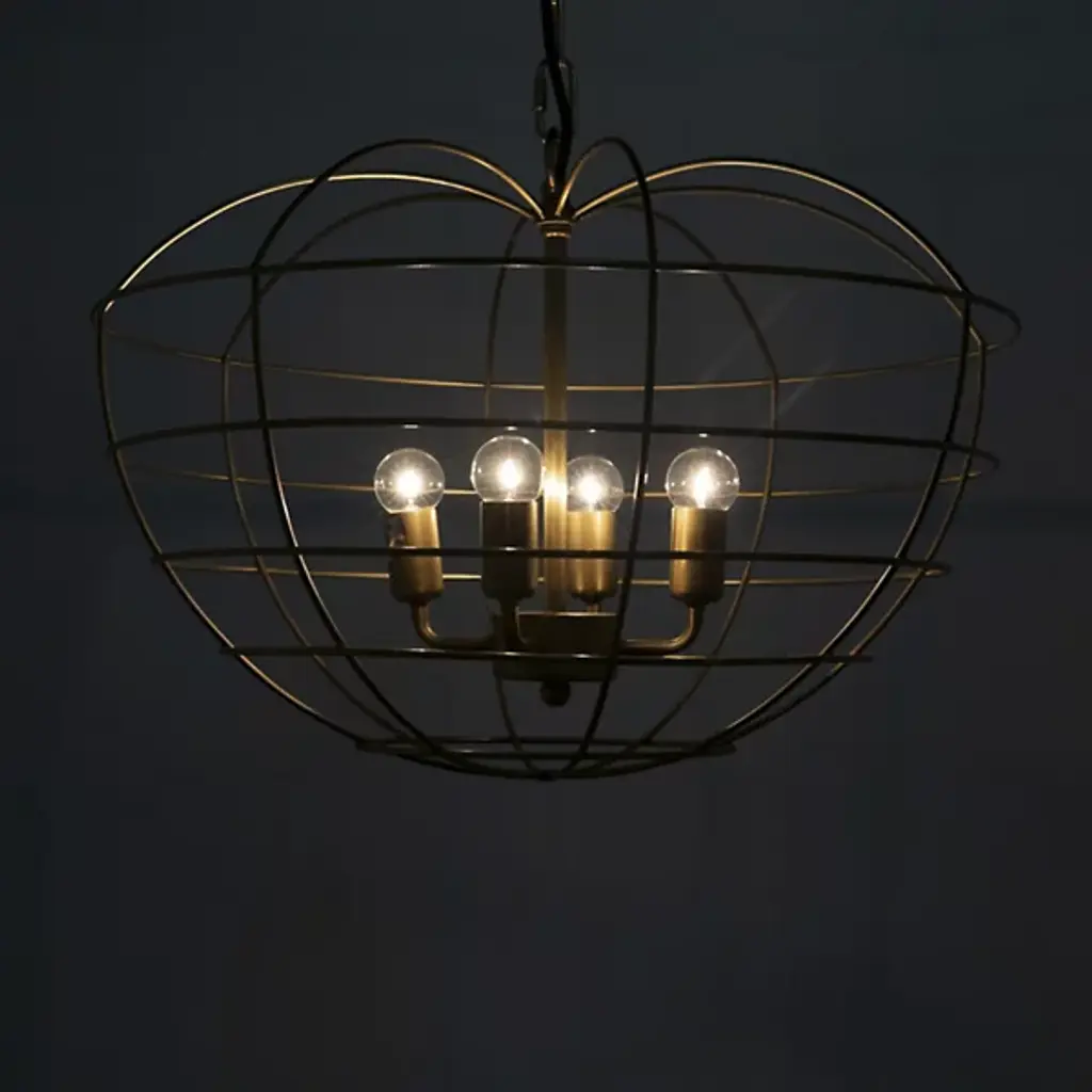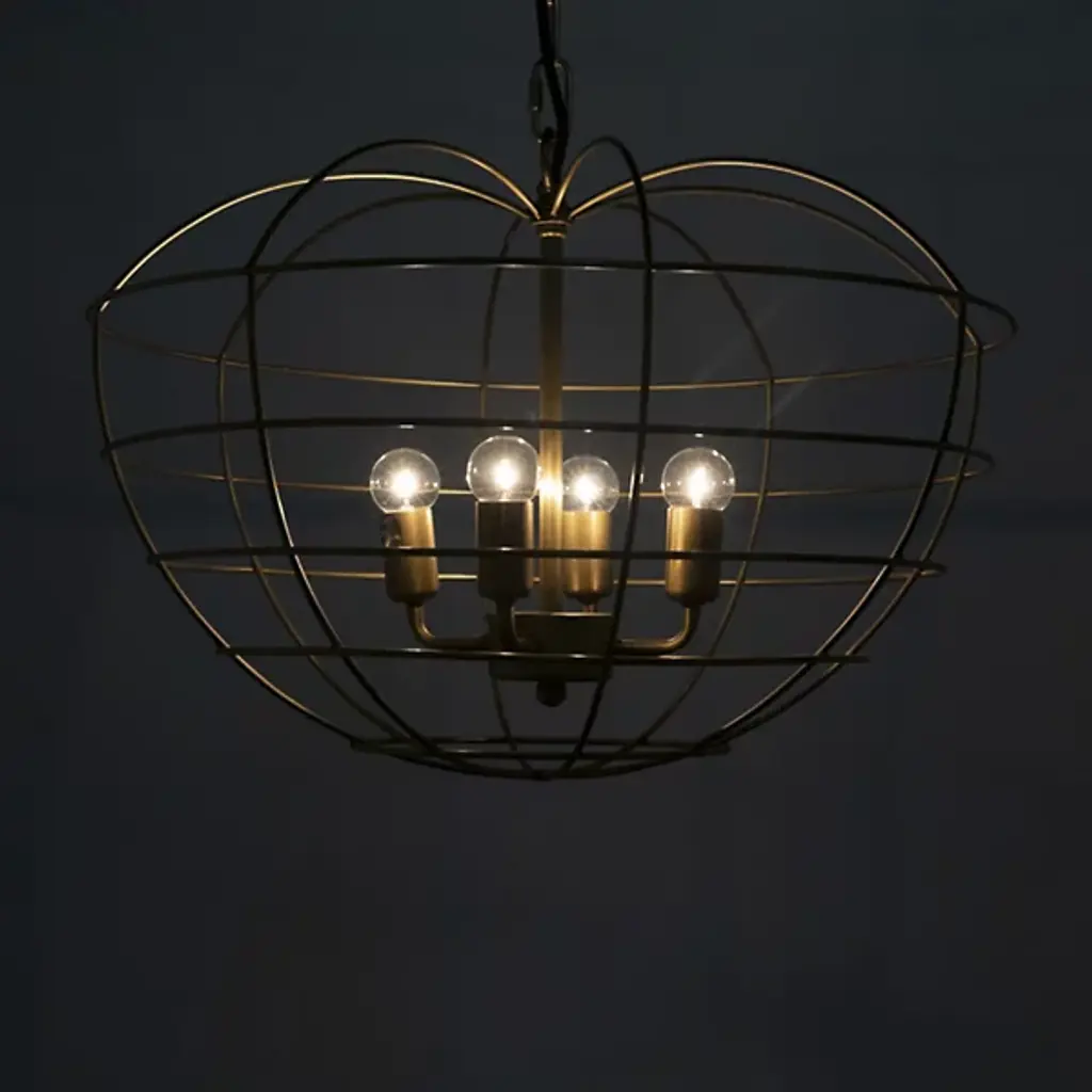 Add bold ambiance and reflected radiance to interiors with the Mo Pendant from Noir, an exquisite lighting fixture that marries style and functionality with ease. The pendant features an apple-shaped cage crafted from antique brass finished industrial steel, housing four small bulbs that emit a bright, strong glow. This unique piece descends via chain from a circular canopy and blends transitional and industrial styles, making it an inspired addition to modern decor, serving as a captivating focal point while illuminating it with a touch of understated elegance.
