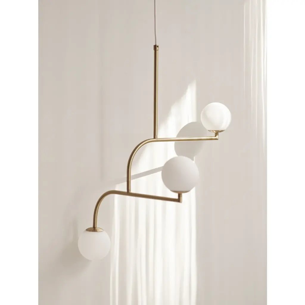 Pholc’s Mobil 70 pendant features three opal glass shades and two identical metal elements that can be turned around to create a desired composition. The elegant pendant is available in three finishes and will catch the eye with its beautiful mobile-like shape in any dining and living room. The Mobil collection was born when designer Monika Mulder was asked to design a lamp that would look good in a New York loft. Inspired by the city’s classic balcony racks in black metal and the streetlights of Brooklyn Bridge, she composed the lights of metal tubes and round glass. In 2017, Mobil won the Elle Decoration Design Award in the category of Lamp of the Year.