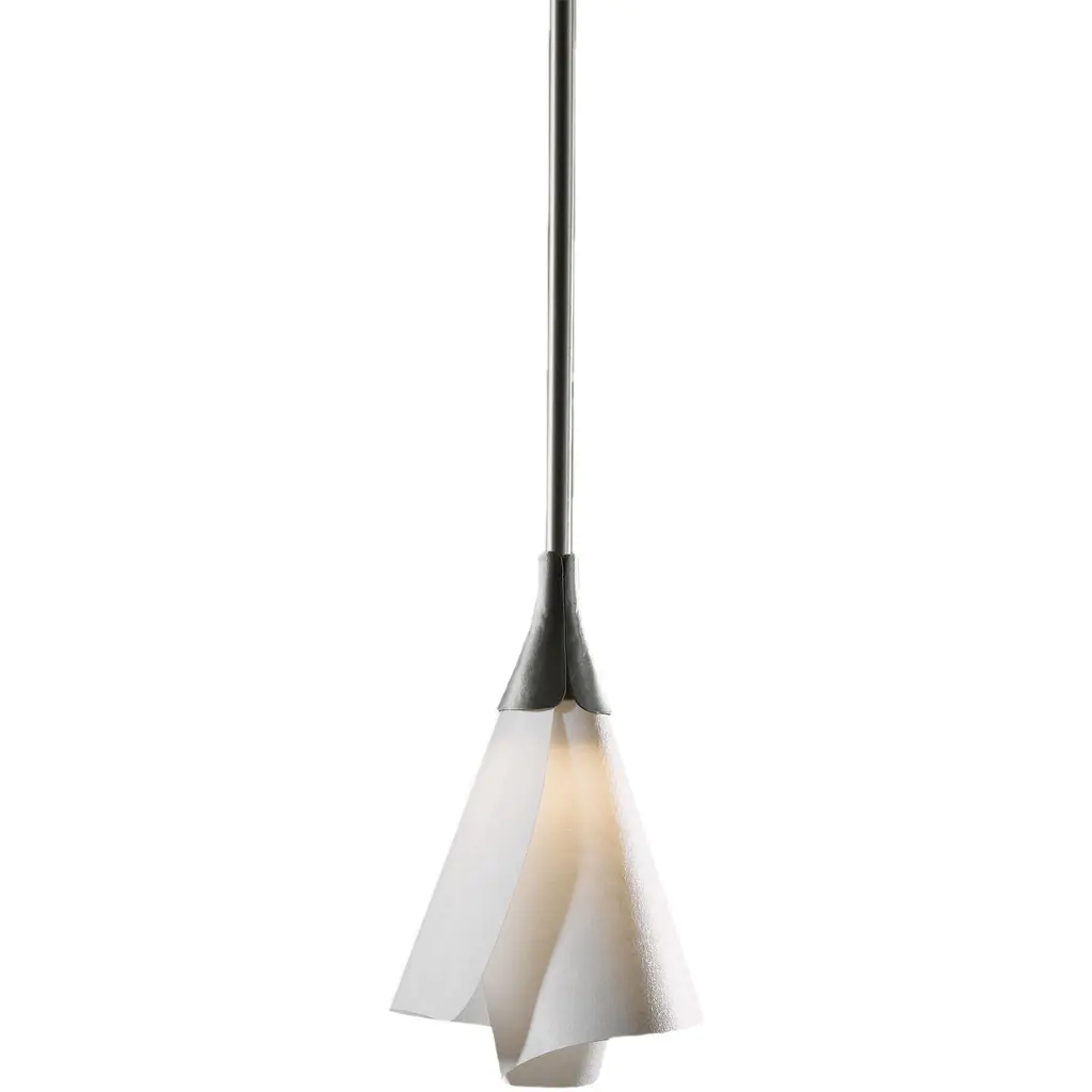 Our Mobius Pendant is handcrafted by artisans at our forge here in Vermont. The shape of the shade, blooming from the steel stem, recalls the fleeting beauty of the calla lily, but uses materials that will last a lifetime. Handmade in our Vermont forge.