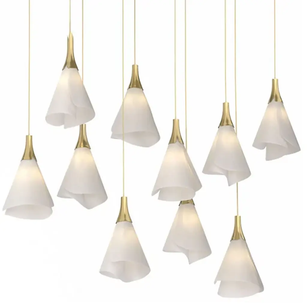 Mobius 10 Light 45.6 Inch Modern Brass Pendant Ceiling Light, Rectangular