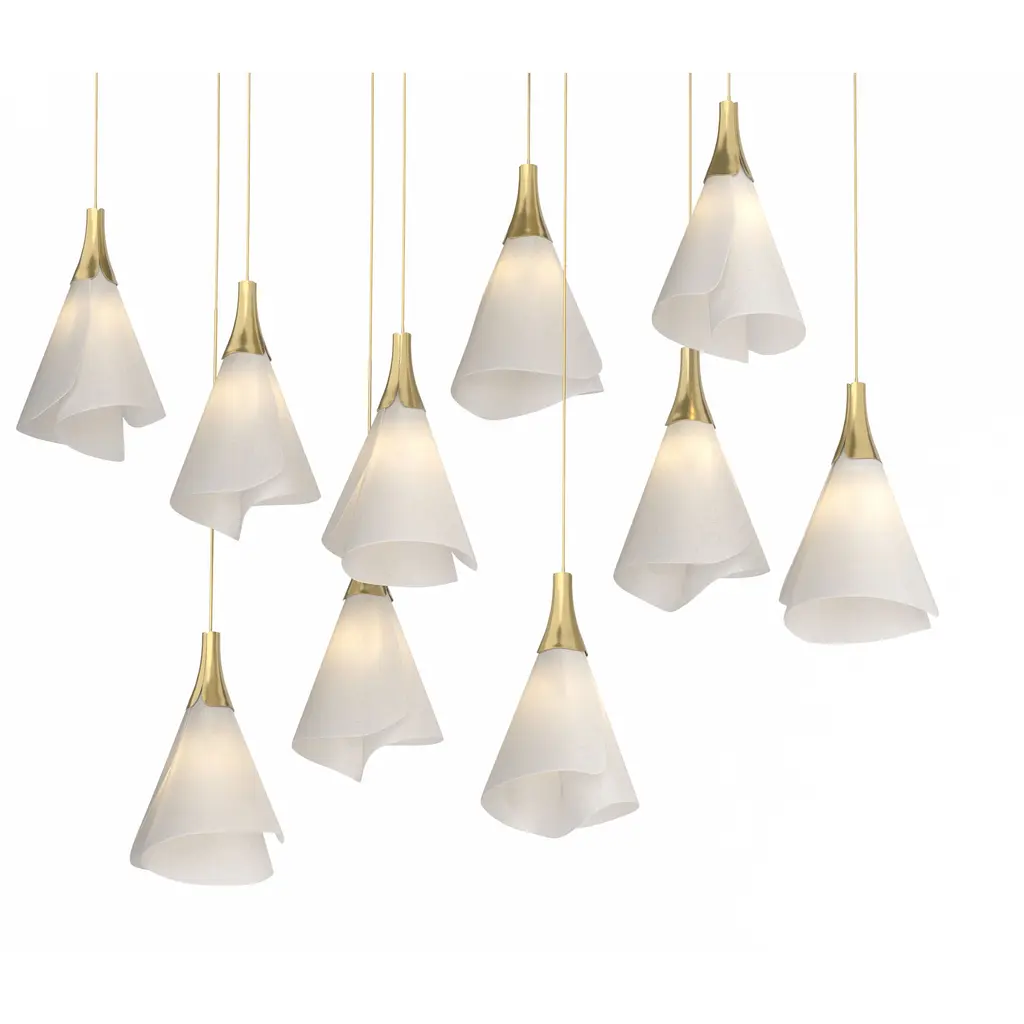 Mobius 10 Light 45.6 Inch Soft Gold Pendant Ceiling Light, Rectangular
