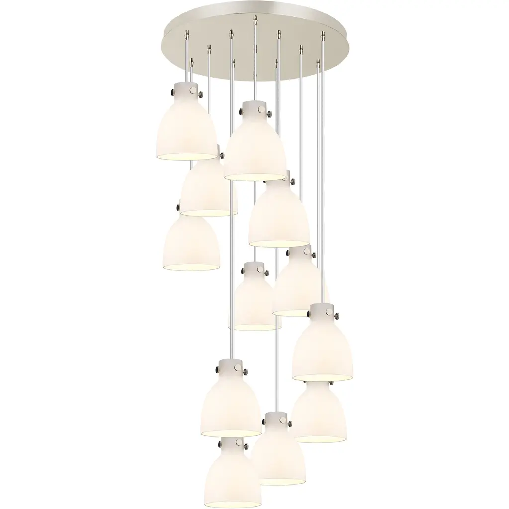 Spun Frost shades create an ethereal feel with the Mobius 9-Light multi-port fixture. Its round canopy creates a central cluster, and the customizability of the cable lengths offers the ability to stagger each pendant to enhance the space. The Mobius Collection includes a range of sizes and formats appropriate for any interior setting.