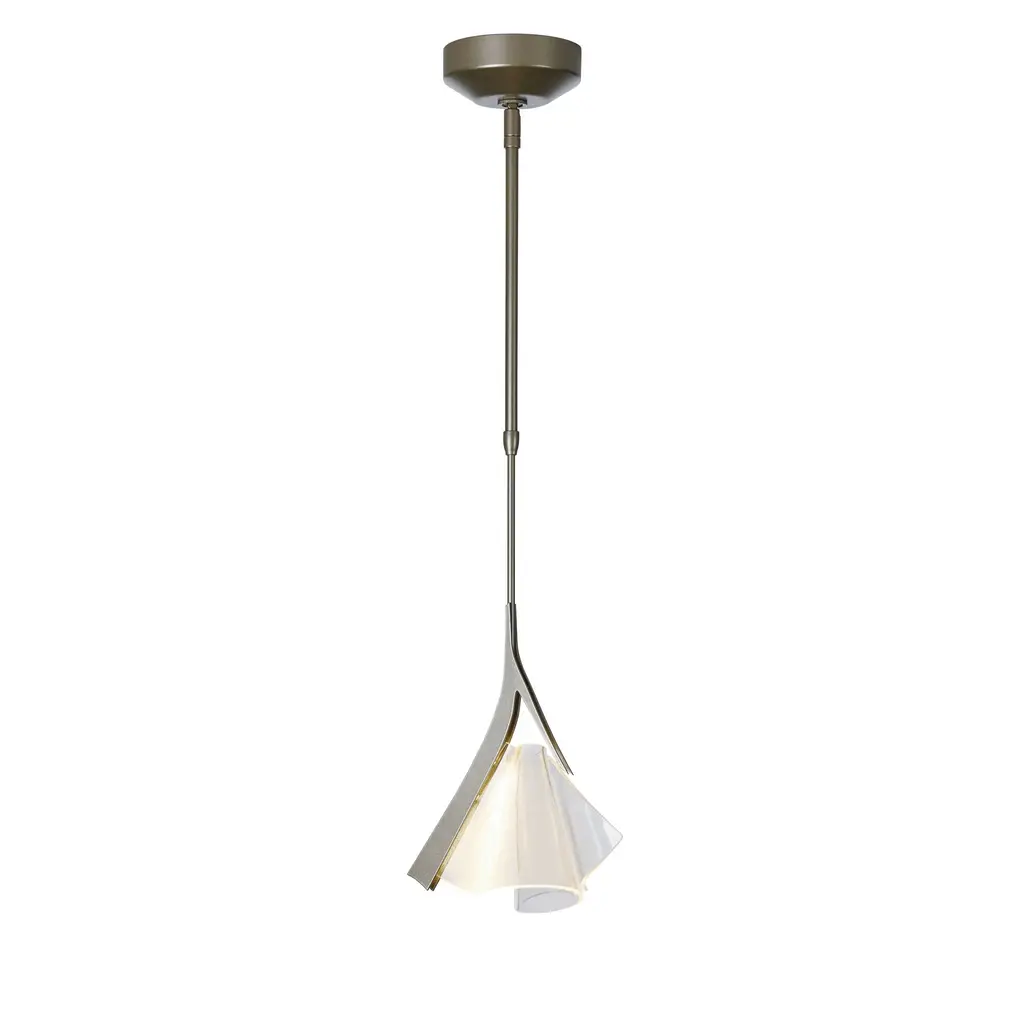 Hubbardton Forge light guide technology has come to the Mobius family. This newest addition uses a light guide as its shade. The result is a pendant that has direct down light, while light diffuses through the gently curved and folded LED light guide to create a brilliant glow. Features