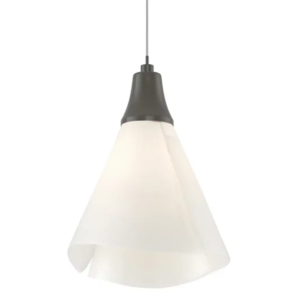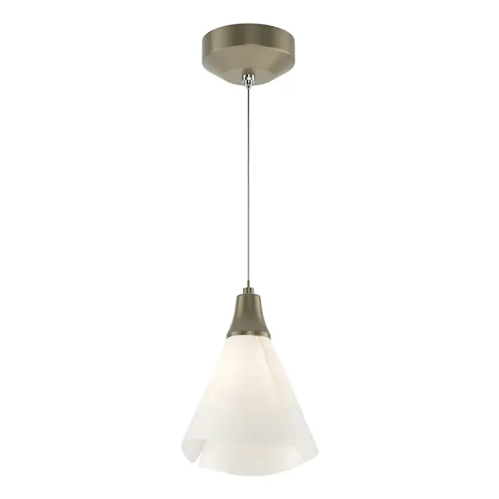 Mobius Low Voltage Mini Pendant by Hubbardton Forge was inspired by the blossoming blooms of nature found among flowers—particularly roses. In this pendant light, a rounded base fits snug against the ceiling holding tightly to a discrete cable that leads down to a wispy glass shade. Hang this low-voltage mini pendant light in a series above your kitchen island or dining table, or illuminate your desk with a single pendant to create focused light.