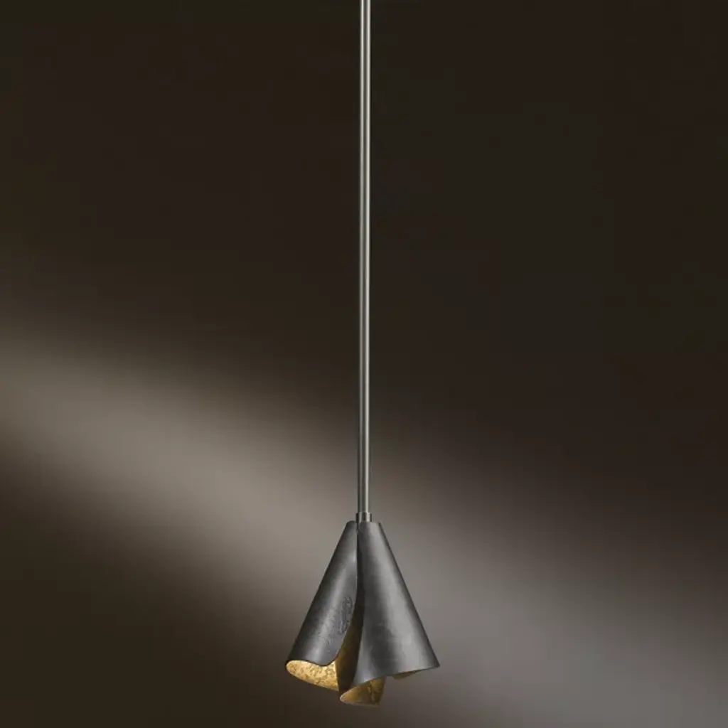 Named for the twisted cylindrical structure that inspired it, the Mobius Steel Shade Mini Pendant by Hubbardton Forge is a beautifully handcrafted addition to your home. With a round canopy and an adjustable stem, this fixture can be placed at just the right height to meet your needs. A hand forged Steel shade is shaped into a soft, calla lily-like conical design and houses a warm light that plays within the shapes and shadows of this piece. Artful and luxurious, this pendant adds a layer of light and style as an individual piece or gathered in a group.