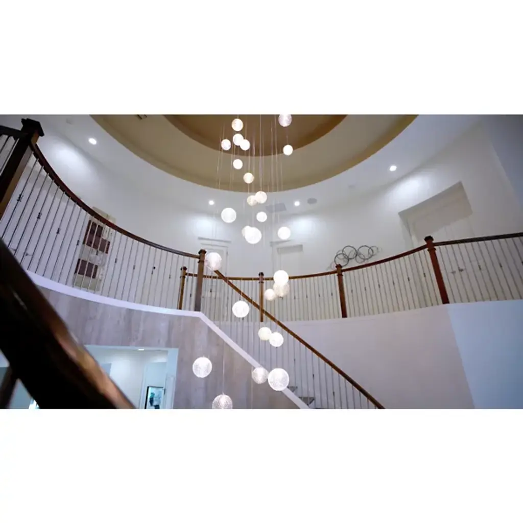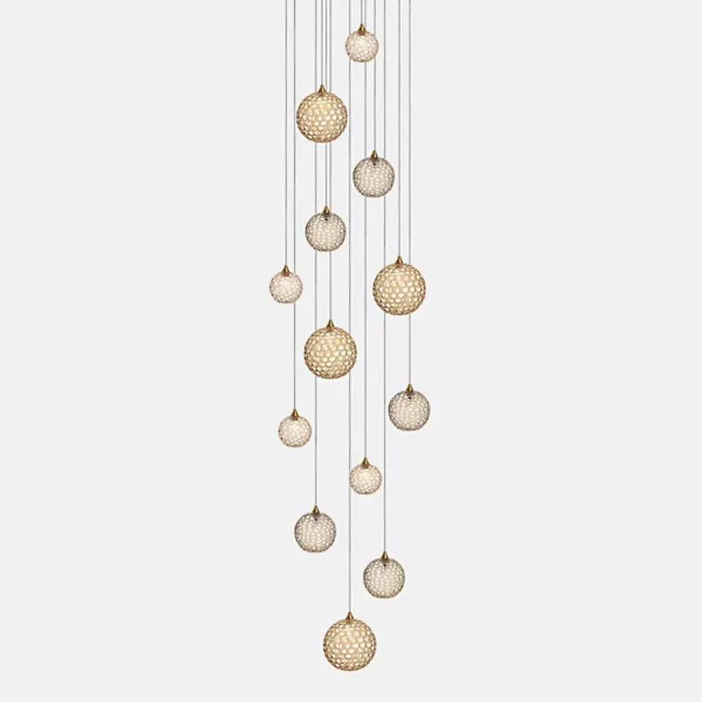 The eyes bounce back and forth between the dotting blown glass volumes of the Mod MD13 Multi-Light Pendant from Shakuff. This Shakuff-designed piece reflects their approach of balancing art and craft to enhance the natural beauty of light. Here, Shakuff takes a page from mid-century modern design, using a spherical shape for its light-softening shades. The glass shades are handblown using traditional techniques and decorated with perforations evocative of a mesh pattern. This pattern translates to a graphic silhouette as a radiant glow passes through it for a great atmosphere. The delightful globes adjust to one's lighting needs with a fine, streaming suspension.