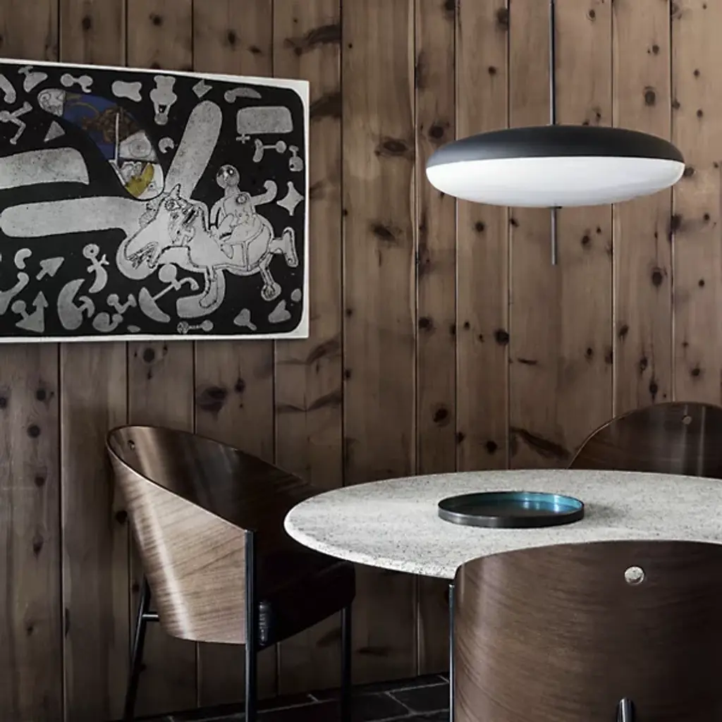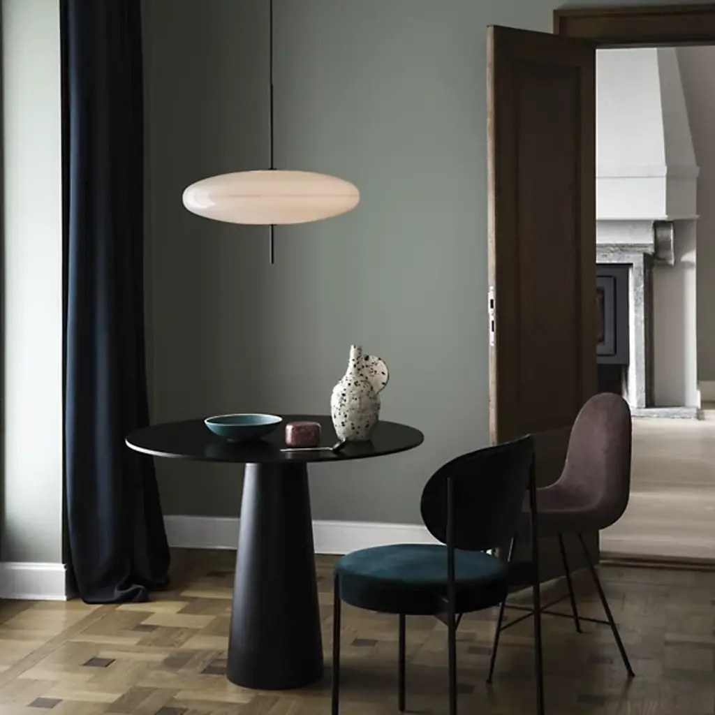 The Model 2065 Pendant from Astep is designed by is designed by Gino Sarfatti. It exudes fine craftsmanship and Scandinavian style. Your pendant is secured by a slender downrod attached to a canopy at your ceiling. This pendant is composed of opaline methacrylate and aluminum. The framework crowns a gorgeous shade of green cast PIMMA that is elegantly illuminated by LEDs that can be easily dimmed using a separately sold ELV dimmer.