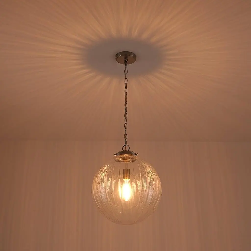 Add a touch of understated elegance to your kitchen or dining space with the modern 1-light striped glass globe pendant. Featuring a beautifully crafted globe shade with delicate vertical ridges, this pendant light creates a refined, striped texture that elevates both form and function. The ribbed glass gently diffuses the light, casting a soft, even glow that’s perfect for task lighting over kitchen islands or ambient illumination in cozy corners. Its minimalist silhouette is paired with your choice of brushed brass, satin nickel, or sleek black finish—each offering a tailored complement to a variety of interior palettes, from modern farmhouse to urban chic. Height-adjustable for a custom fit, this pendant blends sculptural beauty with practical versatility, offering a refined focal point in any contemporary space. Whether hung alone or in multiples, it brings luminous warmth and textural charm to your home.Features:Dimensions: