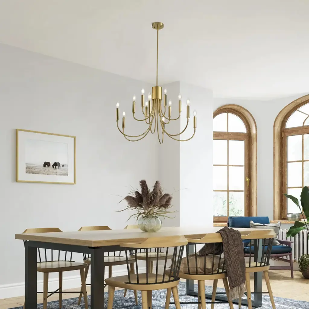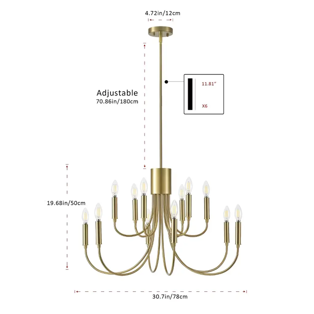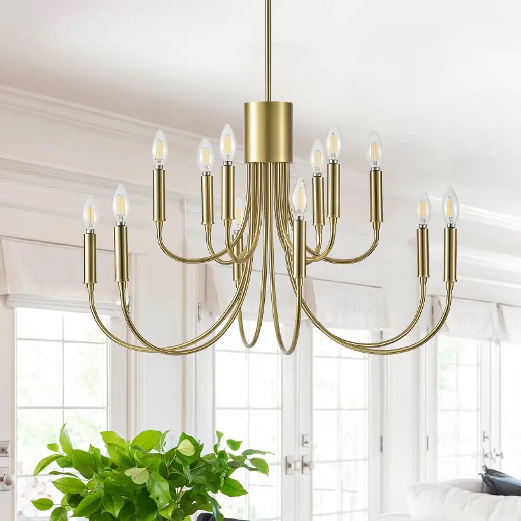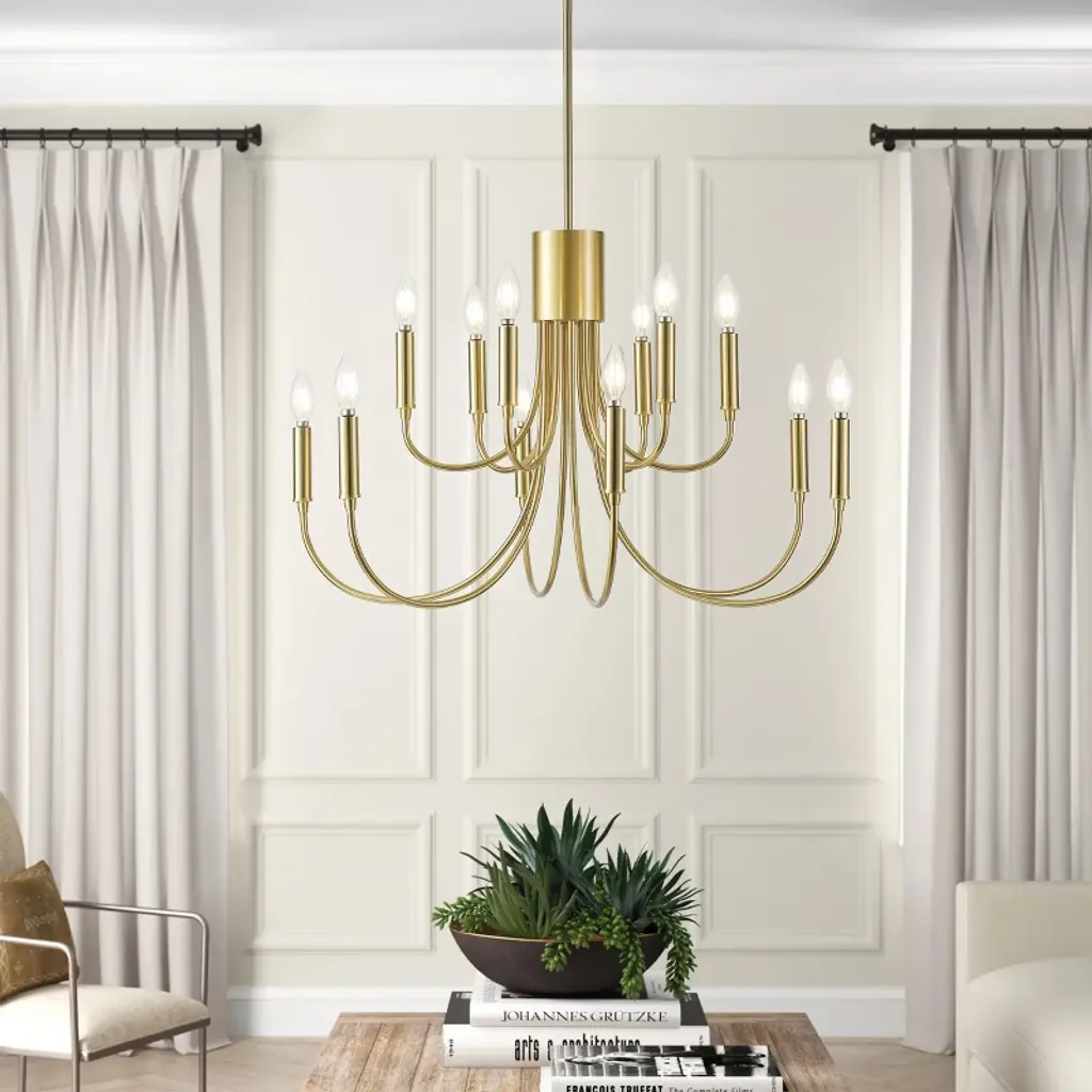 Elevate your space with this 12-light modern chandelier, featuring electroplated iron in brushed nickel or copper tones. ETL certified and perfect for dining rooms, foyers, or high ceilings, it brings sculptural elegance and bright, layered lighting.
