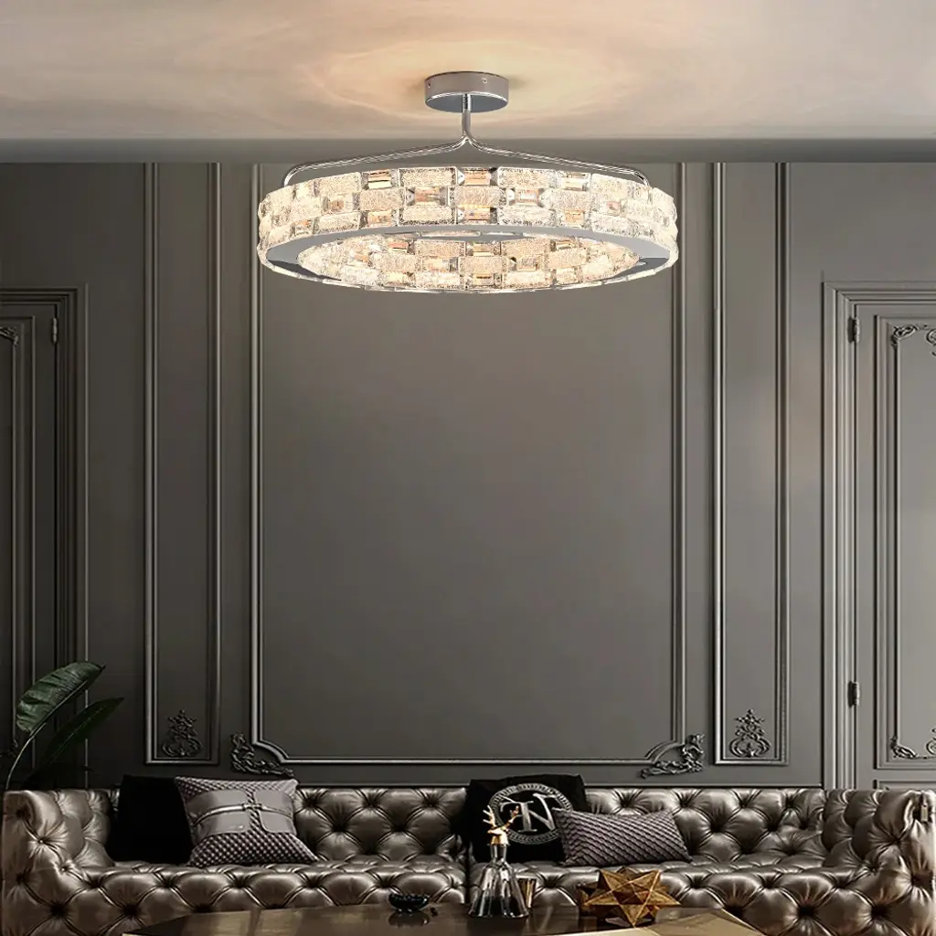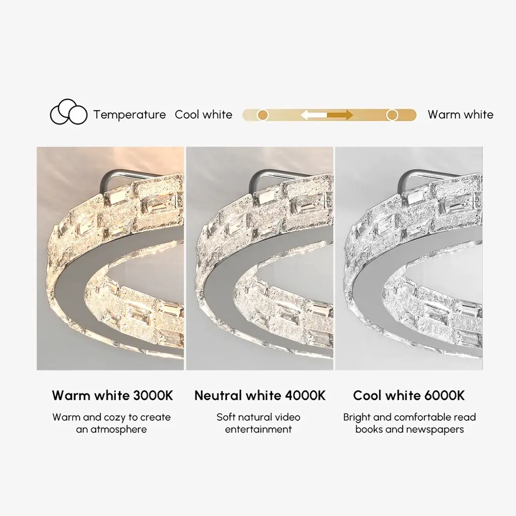 Adjustable three-color lighting effortlessly creates the perfect ambiance for any room. Ideal for kitchens, living rooms, or bedrooms, this chandelier combines elegance and functionality, offering both soft and bright lighting modes to suit your needs. Its sleek design and crystal accents bring a luxurious feel to contemporary interiors, making it a stunning focal point in any home.