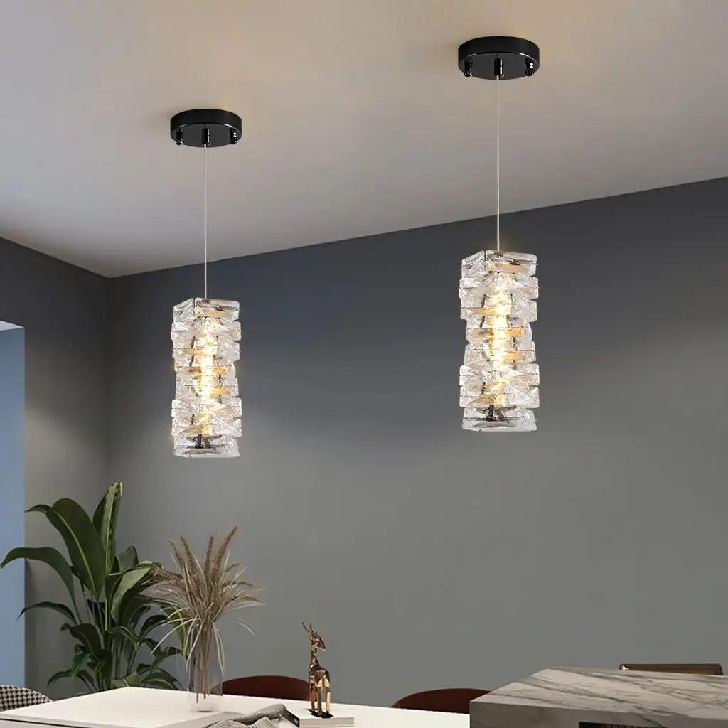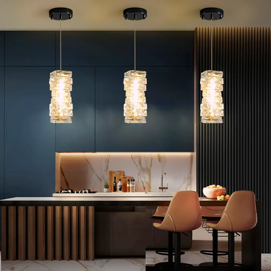 Add a touch of luxury and flexibility to your modern interior with this three-color dimmable crystal pendant light. This compact pendant features a 9.8" tall crystal tower made from premium crystal blocks, paired with a sleek black stainless steel canopy. It includes a built-in LED module with three adjustable color temperatures: warm white, neutral white, and cool daylight. Whether you’re setting the mood for dinner or need brighter lighting for cooking, the light color can be changed at the touch of a switch. Hang one for a minimalist statement — or install two or three in a row over your kitchen island, dining table, or bar for a stunning layered effect. The height-adjustable cable makes installation versatile for different ceiling heights.