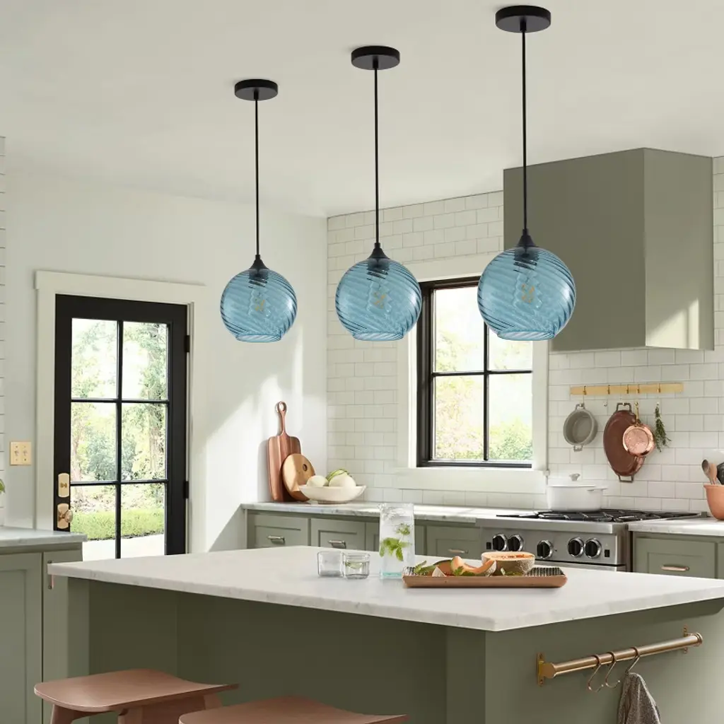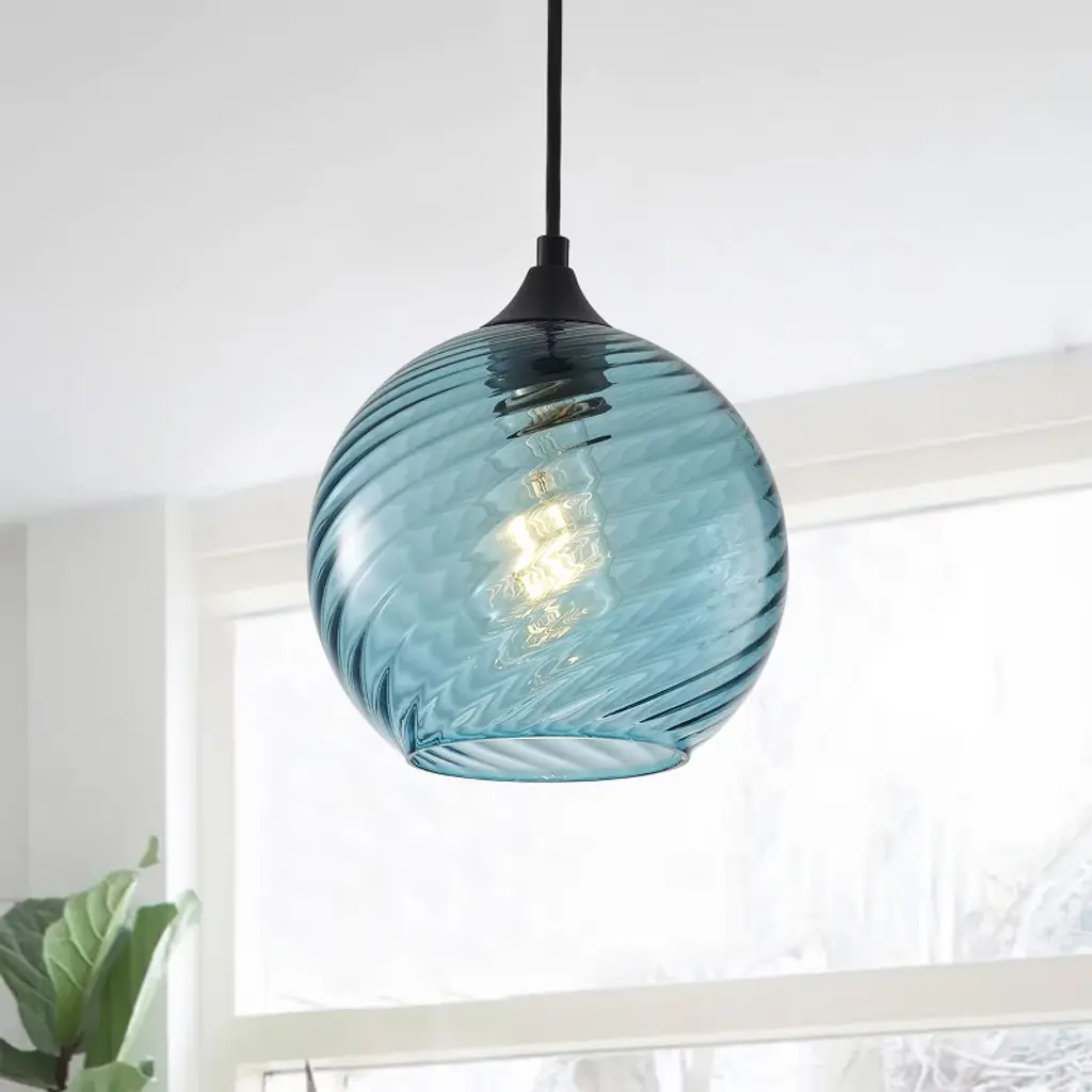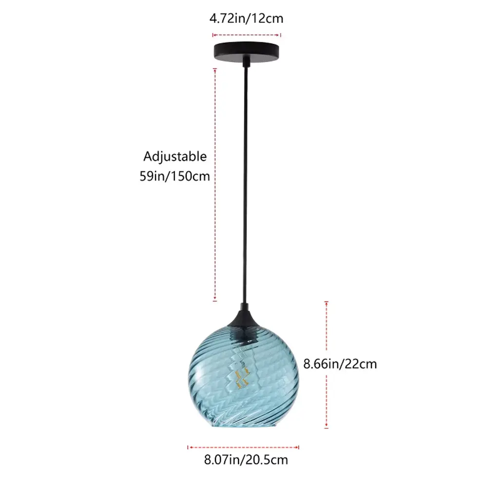 Add a pop of color and modern texture with this ETL-listed blue glass pendant light. Featuring a hand-blown ocean-blue globe with spiral detailing and a sleek matte black canopy, this single-light fixture combines artistic charm with functional design. Its adjustable 59-inch rod lets you tailor the height to suit kitchens, dining rooms, and entryways, while the E26 socket supports a 40W max bulb for dimmable, customizable lighting. Perfect for coastal, farmhouse, or contemporary interiors seeking a bold yet refined statement piece.